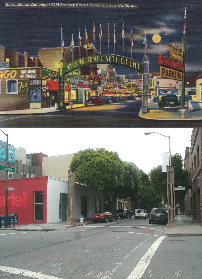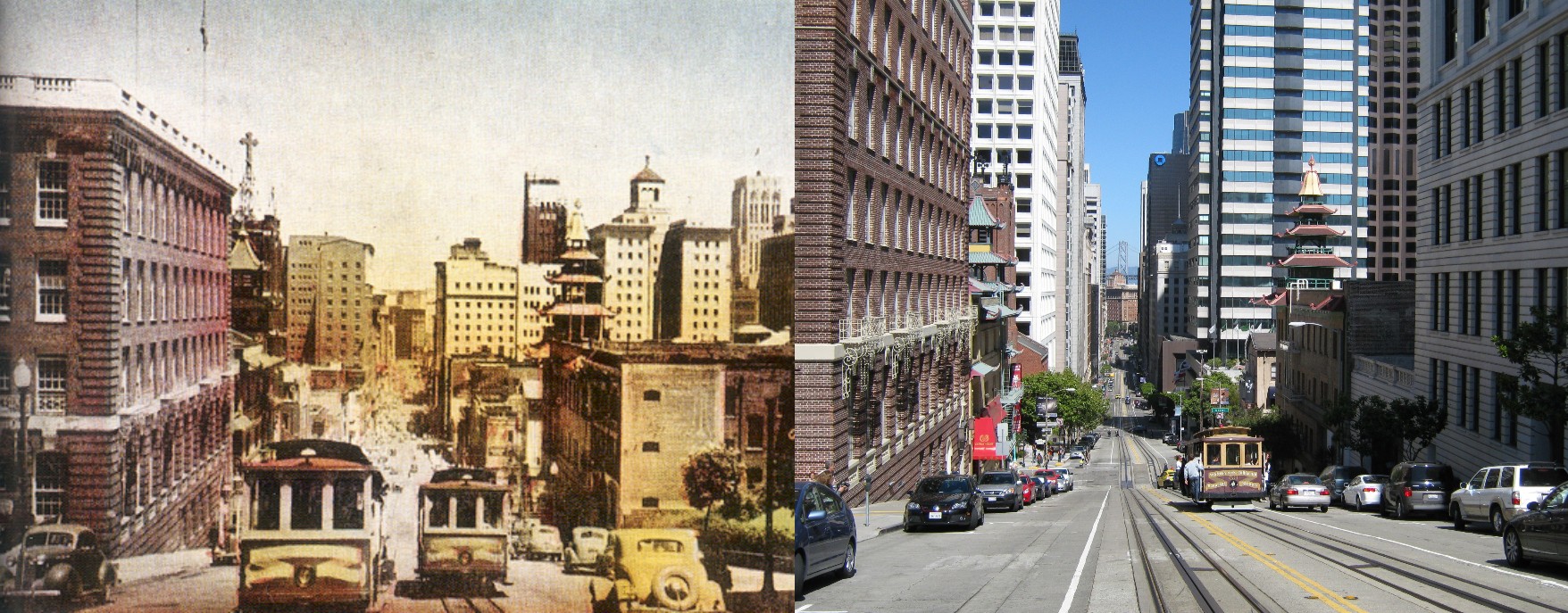 Not always film, but these postcards are fun to do comparison pictures of: Chinatown’s Grant Avenue in the 1930’s (Thumbnail image).