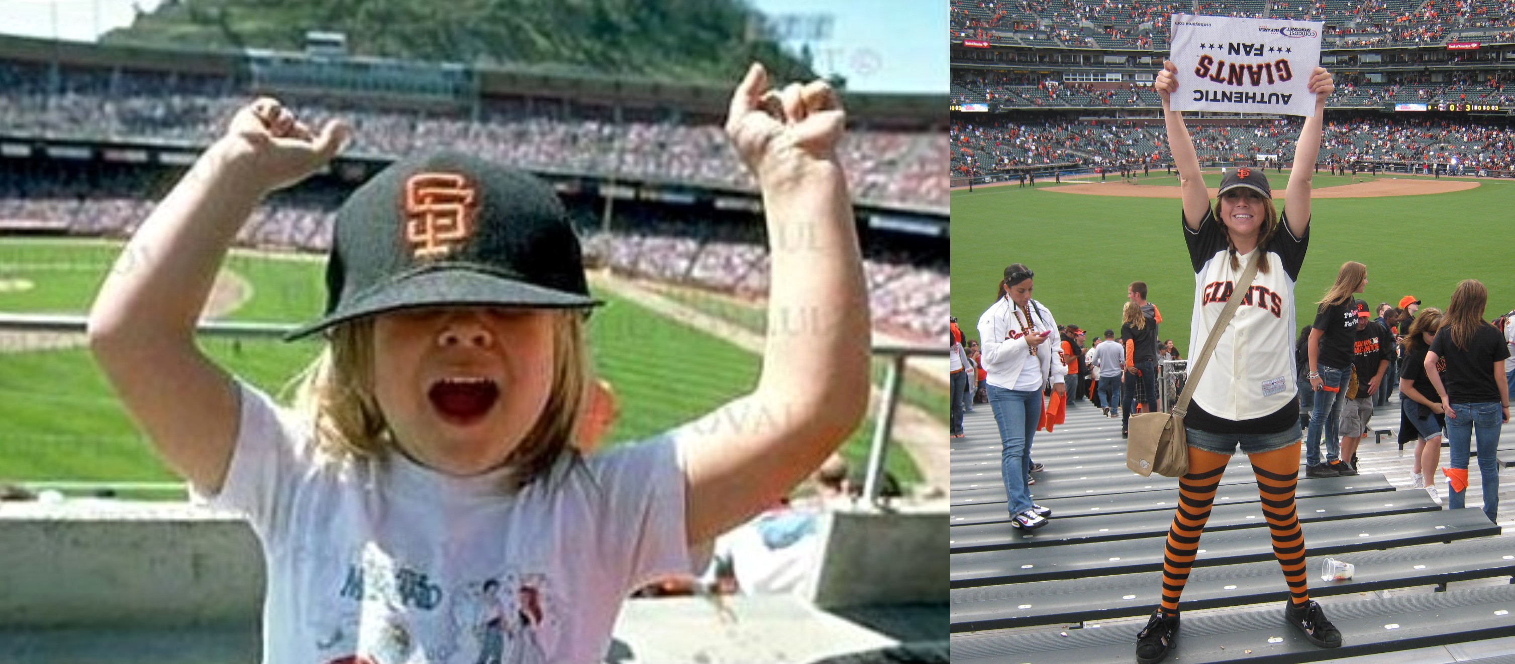 Candlestick Park on the left, and AT&T Park on the right. Don’t know who the child on the left is, but the “forever a child at heart” on the right is pretty special to me! (Thumbnail image)