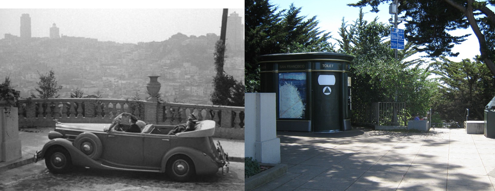 Why, it’s William Powell and Myrna Loy as Nick and Nora Charles, parking at their stately home on Telegraph Hill!