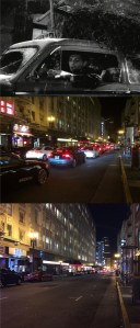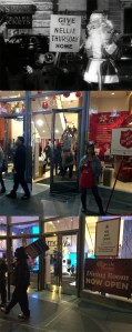 2018: On Black Friday Eve of 2018 I took some pictures around Union Square comparing images from the 1951 film ‘The Lemon Drop Kid’ from a scene that was supposed to be set in New York City on a Christmastime evening, to a San Francisco evening during Christmastime. The movie scene was where Bob Hope and Marilyn Maxwell introduced the song ‘Silver Bells’ as they walk around Downtown New York, although the scene was probably filmed at the Paramount Studios in Hollywood. These last five images are from the movie images in the top photos, Black Friday, 2018 in the center, and Black Friday, 2020 in the bottom pictures.