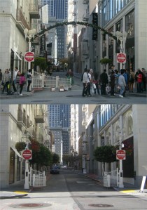 2012: Union Square at Geary Blvd. in 2012: Except for a lack of people in my current picture, and make no mistake, there is, this view hasn’t changed at all.