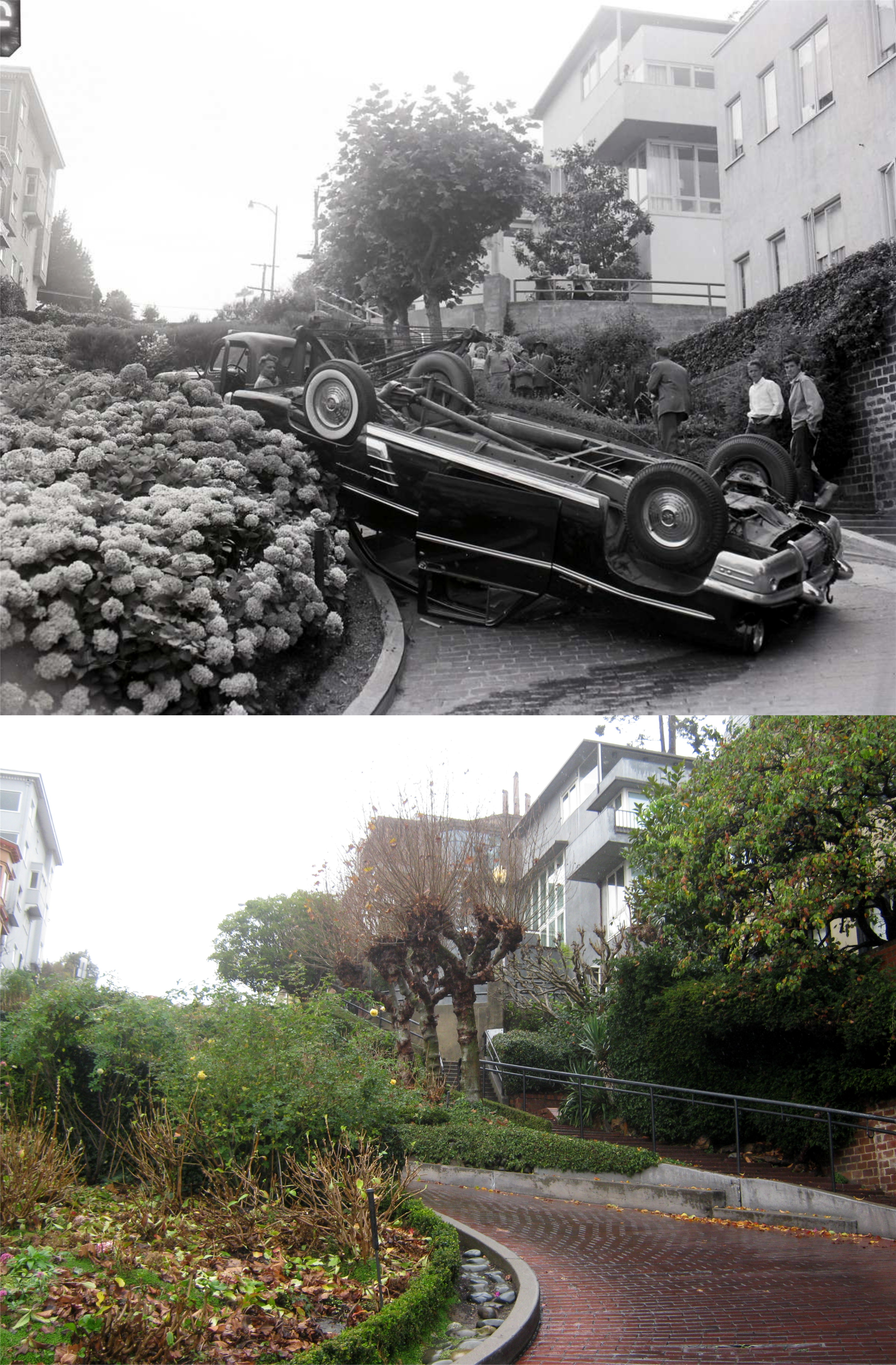 Lombard Street on Russian Hill in August of 1956. (SF Gate/SF Chronicle)