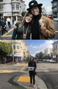 Haight and Ashbury: You can’t have a 60s look back in San Francisco without including the “Summer of Love”: and thank you to the ex ‘flower child” Tricia I met last Sunday who was nice enough to pose in the intersection for me. (Reddit)