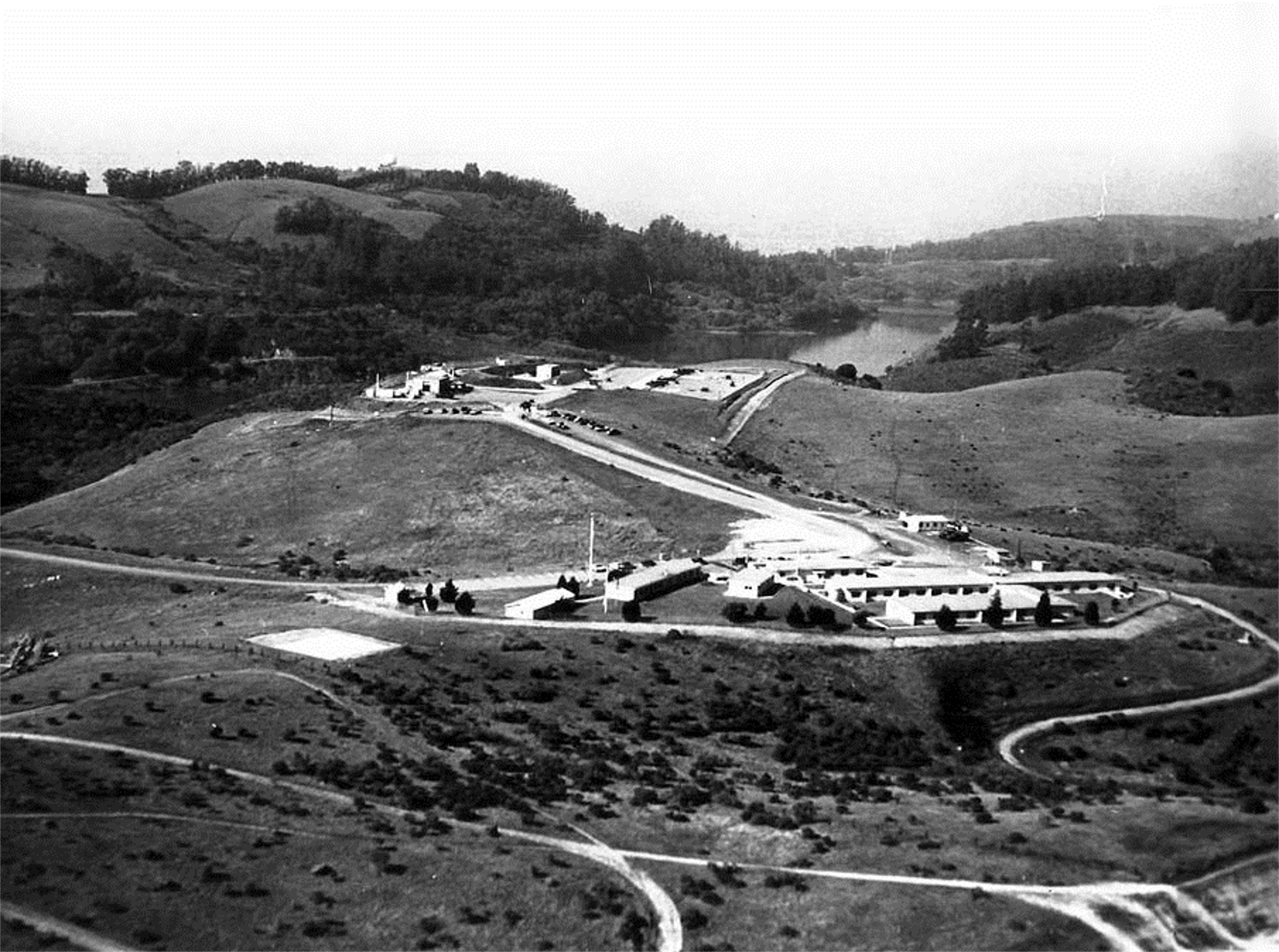 Looking over the missile base toward Lake Chabot in an old photo from Military Historian, Dan Sebby of the California Military Department: