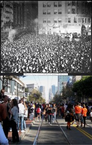 Did you know that the record for the largest crowd ever to assemble on Market Street stood for almost 100 years when opera soprano Luisa Tetrazzini sang at Lotta’s Fountain on Christmas Eve, 1910. No Super Bowl Parades for the 49ers or even the celebration of the end of World War Two drew a larger crowd to Market Street. That record was broken on November 3, 2010 when an estimated one million plus people turned out for the victory parade celebrating the San Francisco Giants first World Series championship in San Francisco. I wonder if Luisa sang, “Kill the wabbit! Kill the wabbit!” Come on, you guys remember that Bugs Bunny, Elmer Fudd opera cartoon.