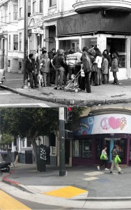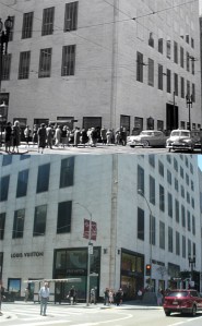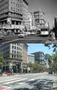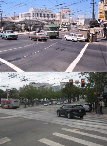 Still believing that she killed Hayden, Pat begins searching for Tracy to try to help him. They agree to meet at the Powell and Market Street cable car turnaround and begin to fall in love with each other during a cable car ride. What better spot to fall in love? You can see a lot of this corner in this scene and cable cars are beginning to practice for their return in August or September so I was able to get one in my update. Well, I’ll have to leave you dangling on the edge of you seat because I didn’t get a chance to do any more updates. Needless to say, if Pat isn’t falling in love with Shane but Tracy instead, you can guess the denouement.