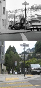 Shane and Peterson go to her apartment on the corner of Filbert and Mason Streets to decide what they’re going to do. Tracy, who has learned where Peterson lives, goes there to talk to her, but Shane thinks that he is there to blackmail her. Peterson isn’t so sure. Because of the tree, I had to take my update a little further out in Filbert Street to get Coit Tower and Saints Peter and Paul Church in the picture.