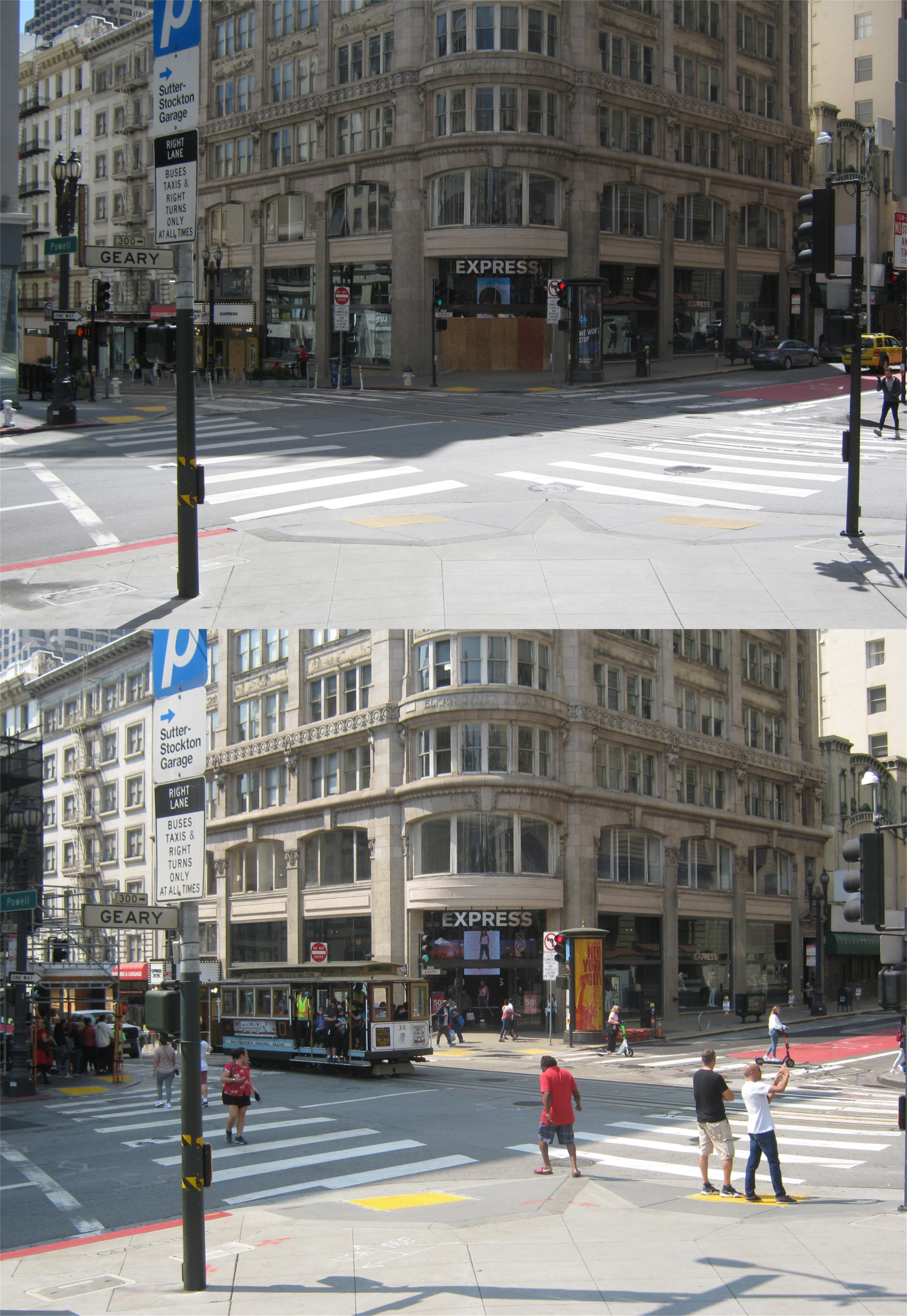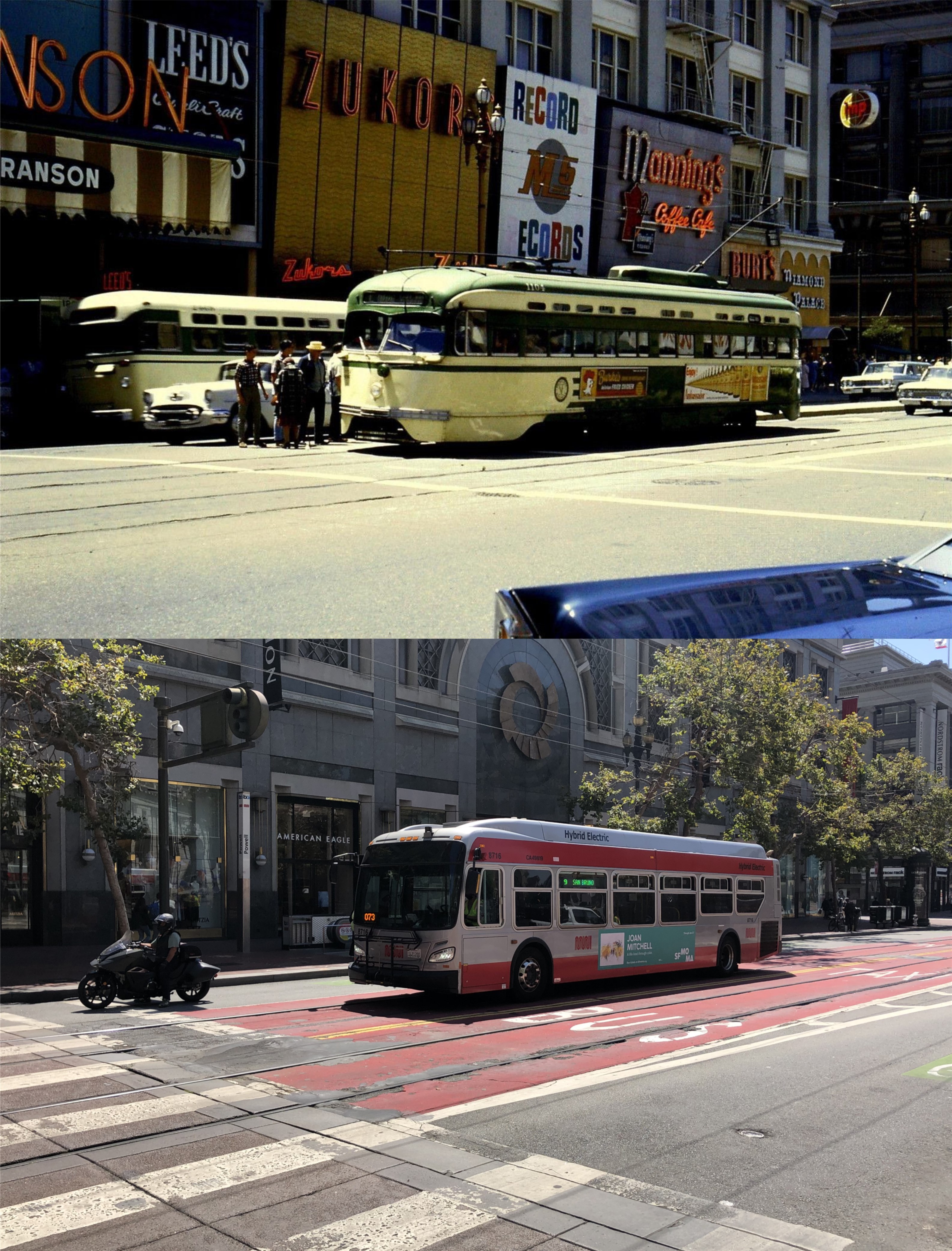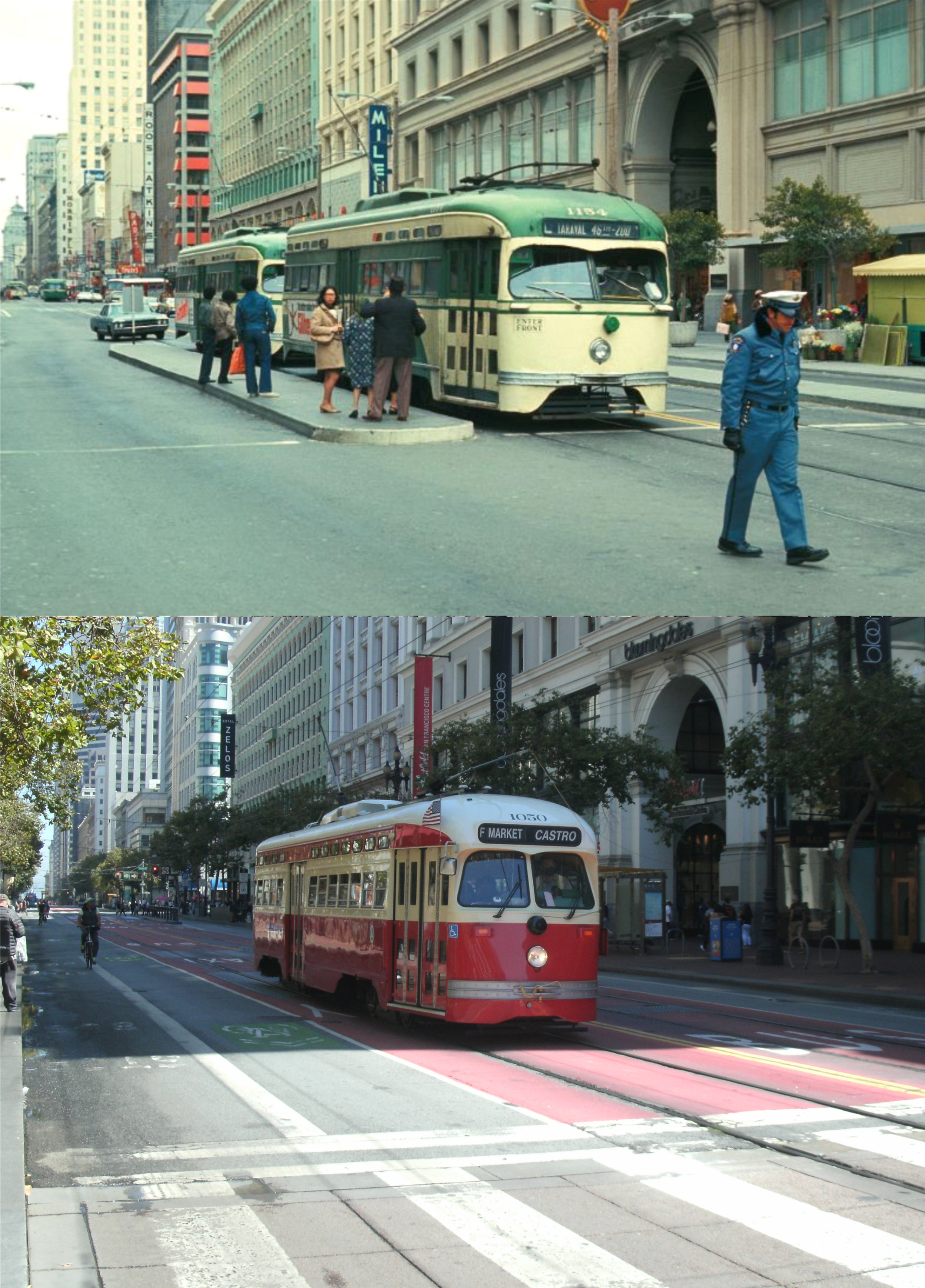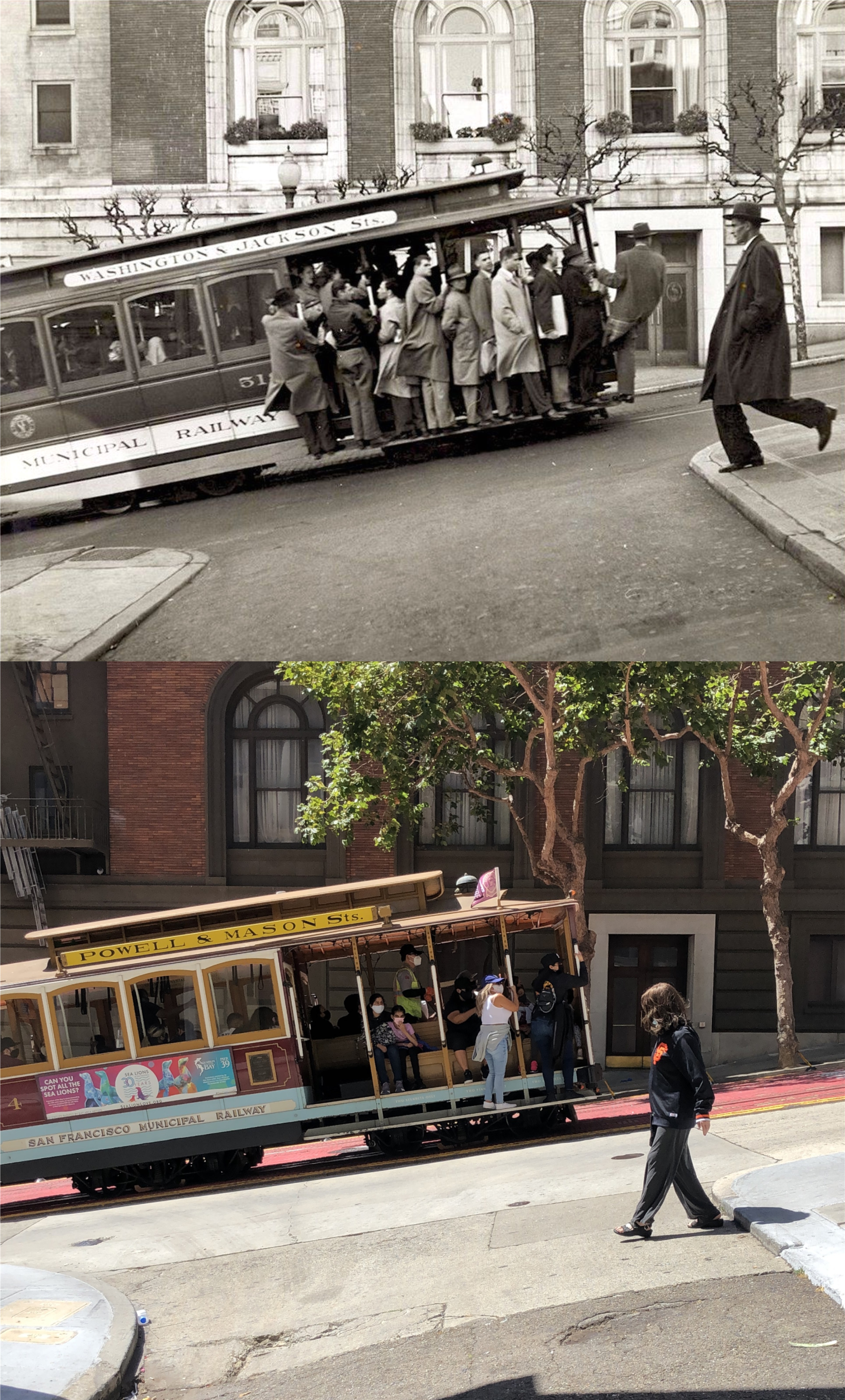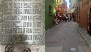 San Francisco starts to appear in panel number two. #12 is the 450 Sutter Building designed by Timothy Pflueger. #13 is the Bay Bridge. #15 is another Timothy Pflueger San Francisco building, the Pacific Telephone Building on New Montgomery Street. Among other notable historic figures in this panel are #23, George Washington, #24, Thomas Jefferson, and #25, Abraham Lincoln.