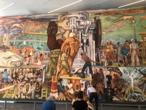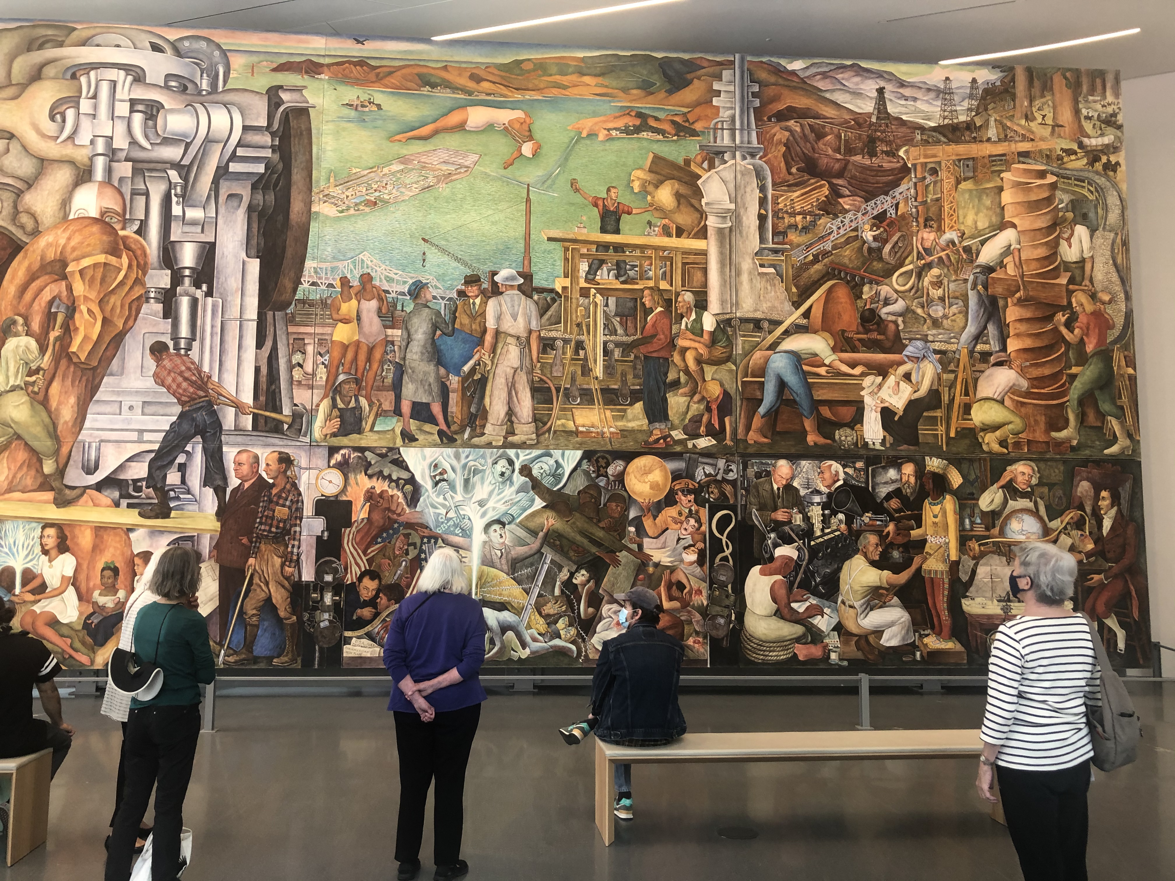 One of the most prominent Mexican painters of all time, Diego Rivera, was commissioned by San Francisco Architect, Timothy Pflueger, to paint a mural for the 1939 / 1040 Golden Gate International Exposition at Treasure Island for the 1940 season of the fair. Fair visitors were allowed to watch Rivera as he painted the mural. The painting is on display at the San Francisco Museum of Modern Art until the summer of 2023. Split up into five panels, I’ll highlight a few of the enormous amount of people and places Rivera included in the mural, identified in the free brochure of the exhibit provided by SFMOMA.