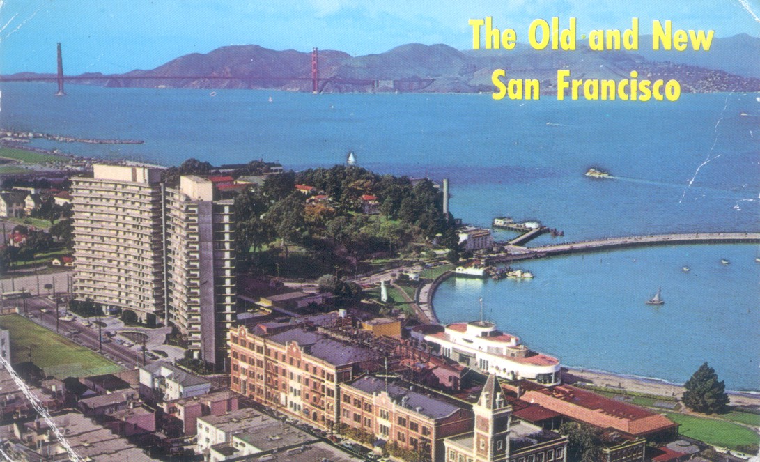 Above the Fisherman’s Wharf Lagoon and Pier 45: The little chapel is now where the white building at the bottom center was.