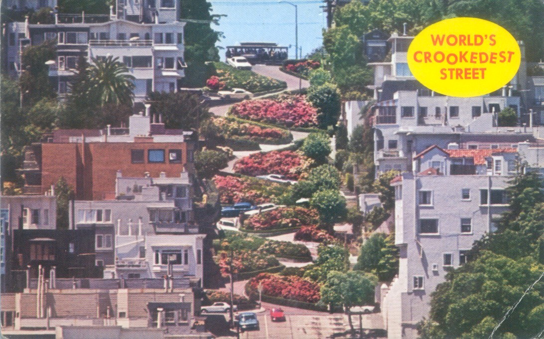 Lombard Street, “The World’s Crookedest Street”, to which Herb Caen added, “after Wall Street.”.