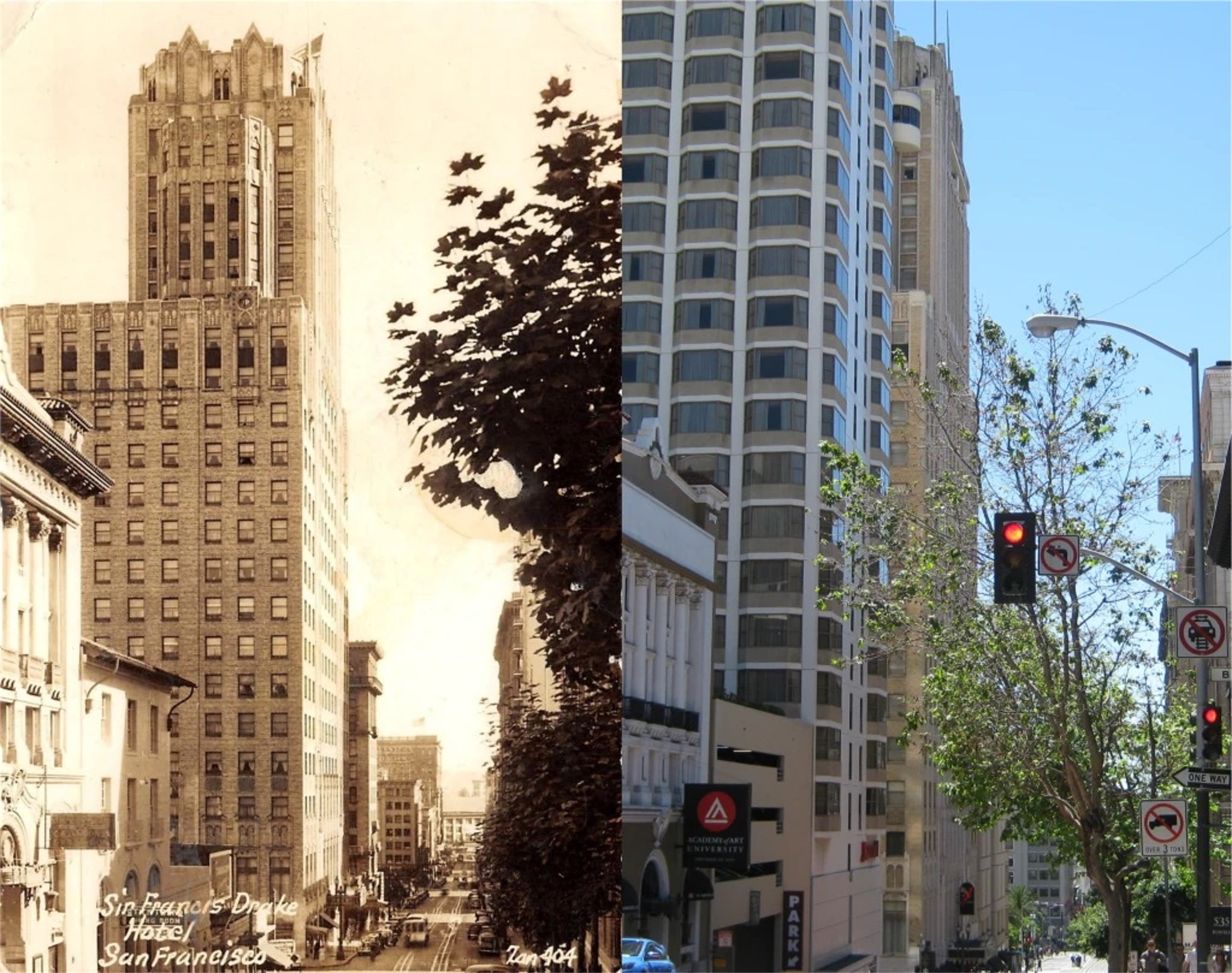 An aerial view of northeastern San Francisco before the skyscraper boom of the late 1960s changed the view radically: