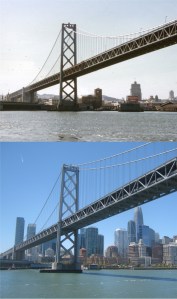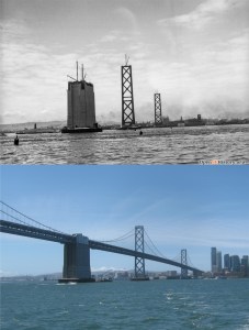 After the ceremony, we headed back for a cruise under the Bay Bridge, seen in 1961 in the old photo. (opensfhistory.org)