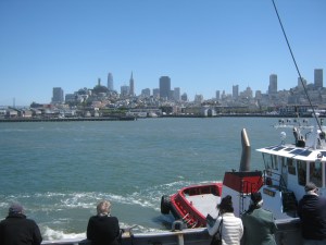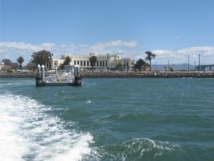 We circled around Alcatraz, seen a 1960 picture, from a near angle as the current picture, and headed out to the Golden Gate. Although not as many as the earlier days, there were still quite a number of prisoners on the “Rock” when the 1960 picture was taken’ (opensfhistory.org)