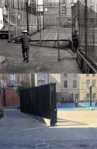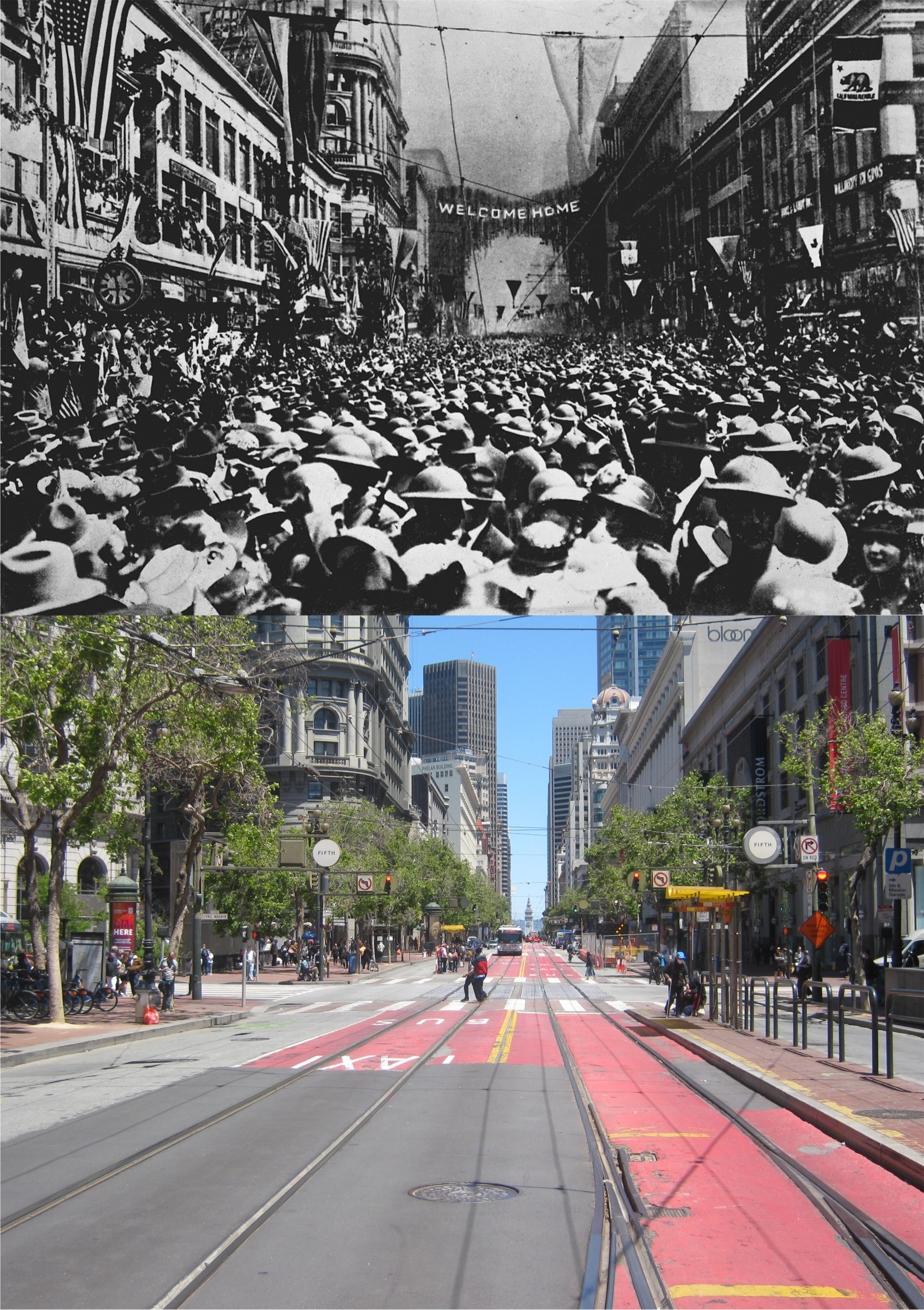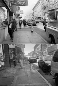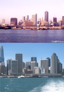 The tugboats hooked up with us again as we neared Pier 45, and pushed us back into port. With a little editing, my picture lines up pretty good with the old 1958 picture looking toward Pier 41. The sailing ship, the Balclutha, now tied up at the Hyde Street Pier, is in the left in the vintage picture.
