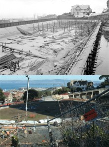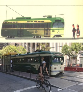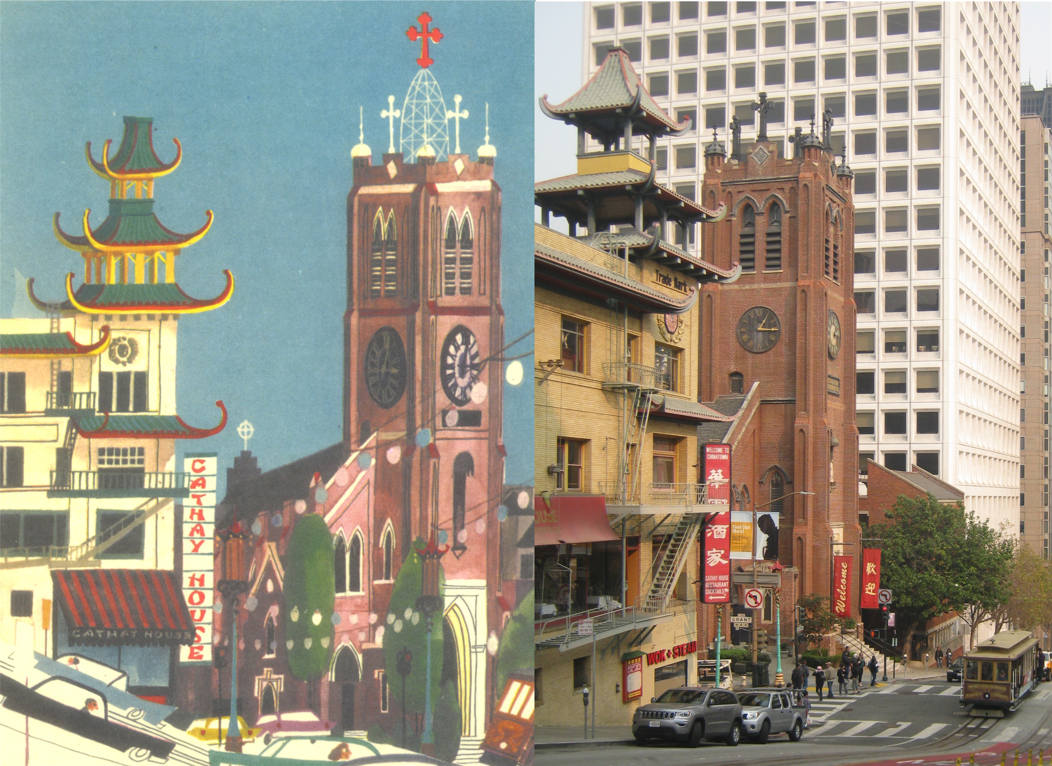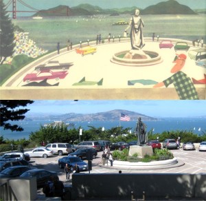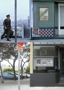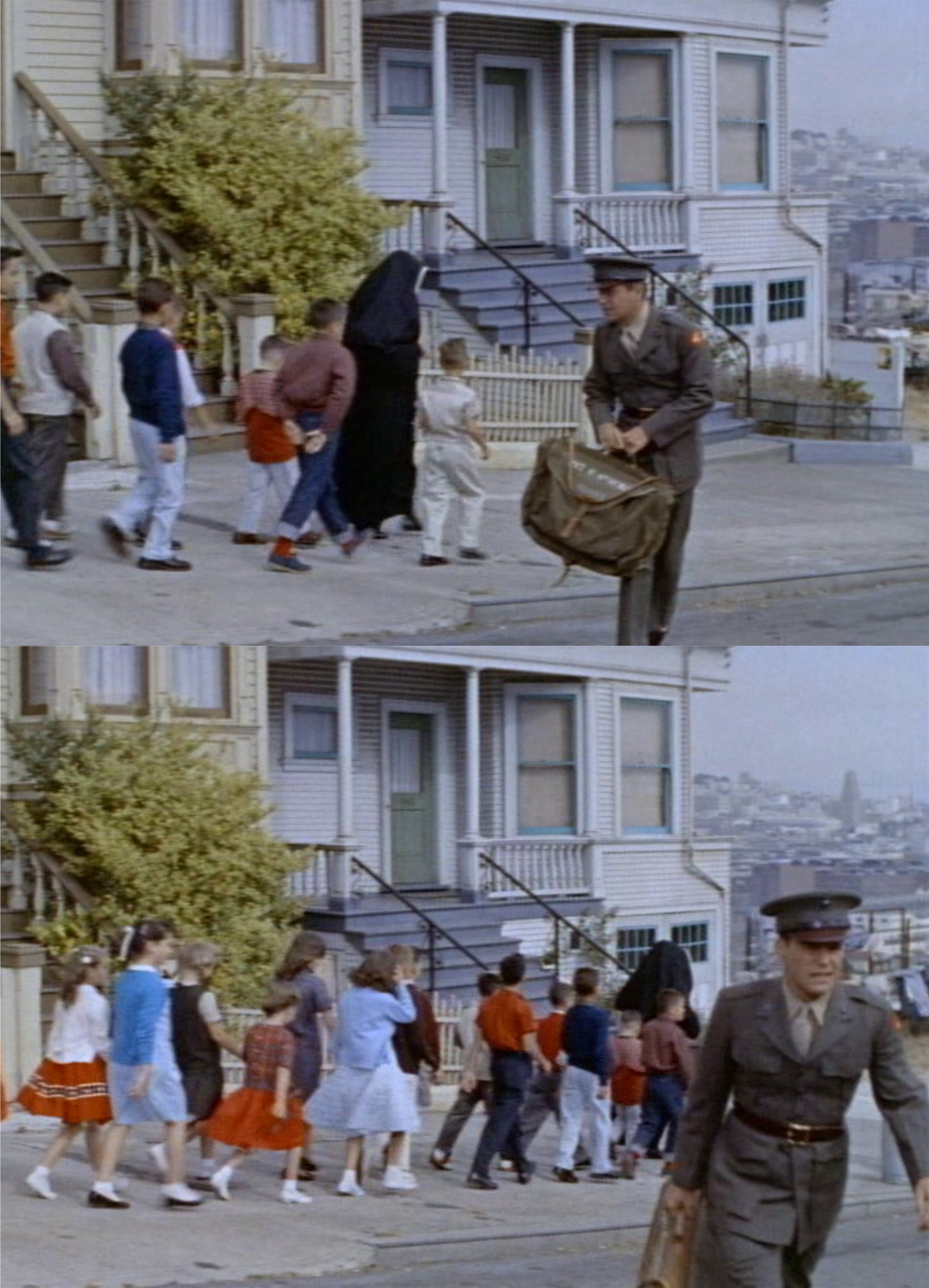 A cable car heads up California Street on Nob Hill at sunrise on the last day of shore leave for the three Marines, and the film includes the obligatory view from the Top of the Mark. Other locations in the movie that I wasn’t able to include are the Hoover Tower in Palo Alto, Monterey and Carmel.