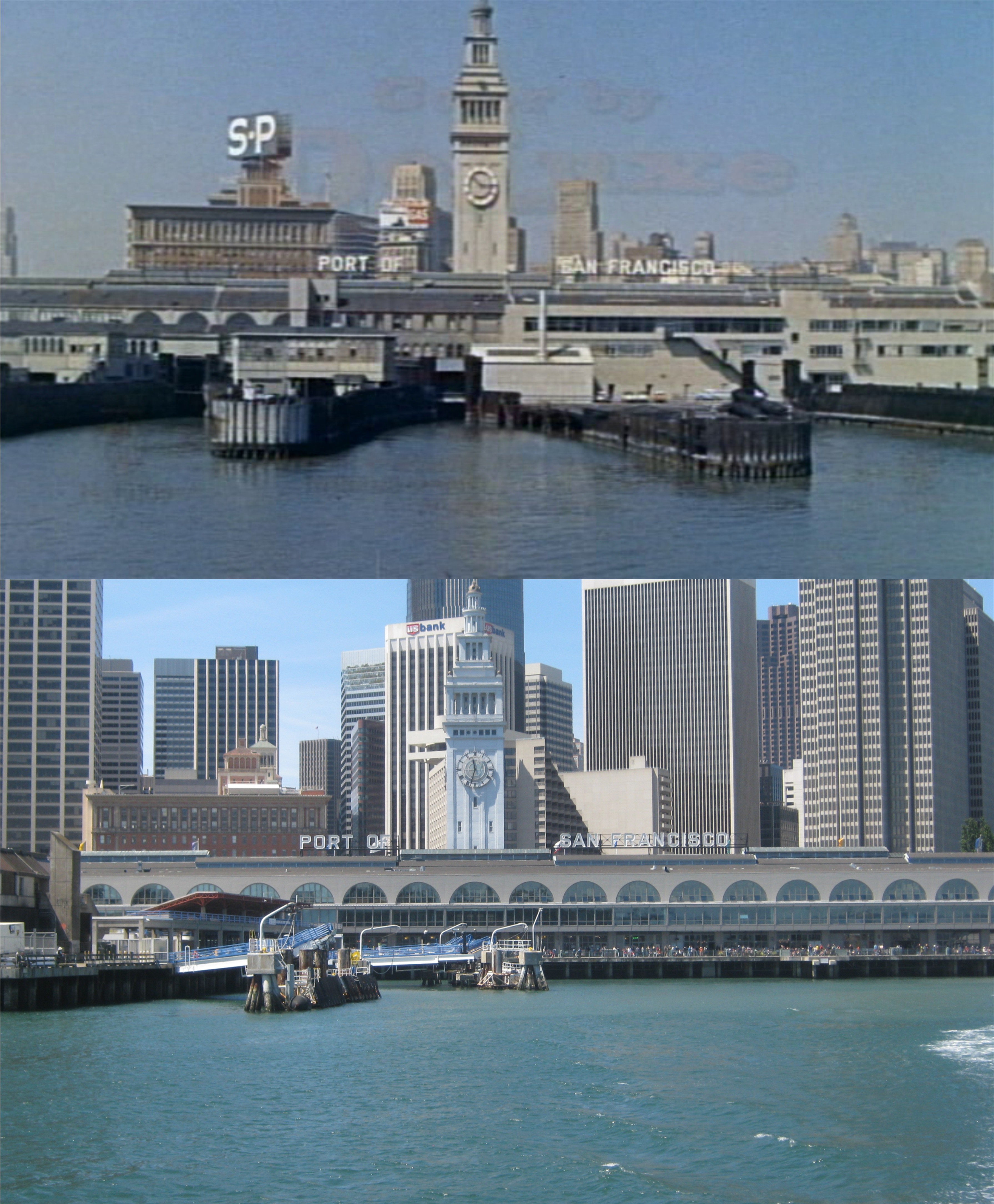 The three buddies enter San Francisco on a ferryboat from Oakland.