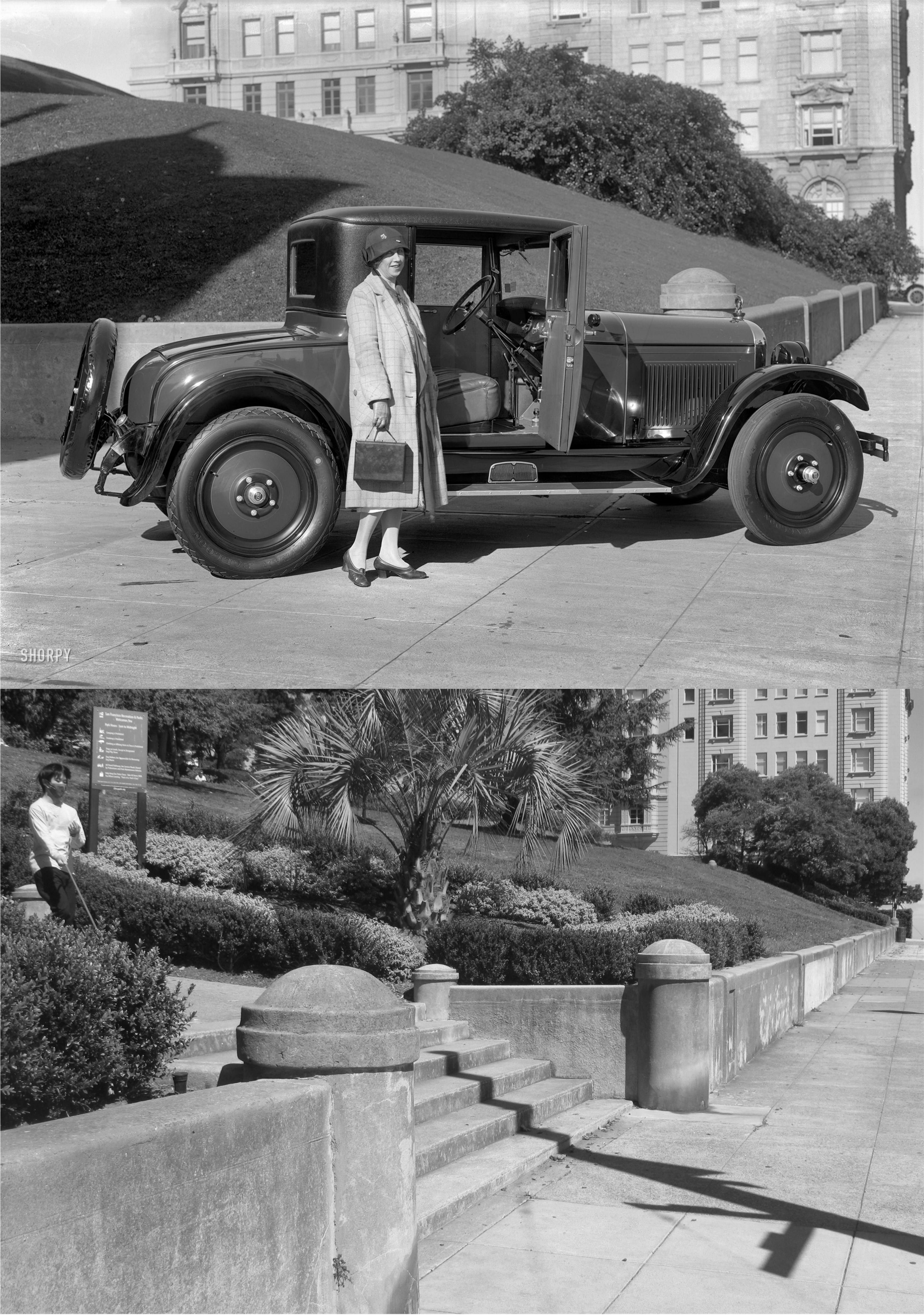 Last Sunday, I did another update of the previous photos of the old reservoir under construction in 1919 with the new park looking toward Hyde Street. The famous Chateau Building at Francisco and Hyde Streets is still there. That tent was just a young couple with babies enjoying the new park for the day, and not the beginning of a homeless encampment. (opensfhistory.org)