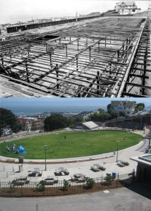 In 2021, I matched up an opensfhistory.org photo of an old photo from Larkin Street with the construction of the new park that would open in 2022.