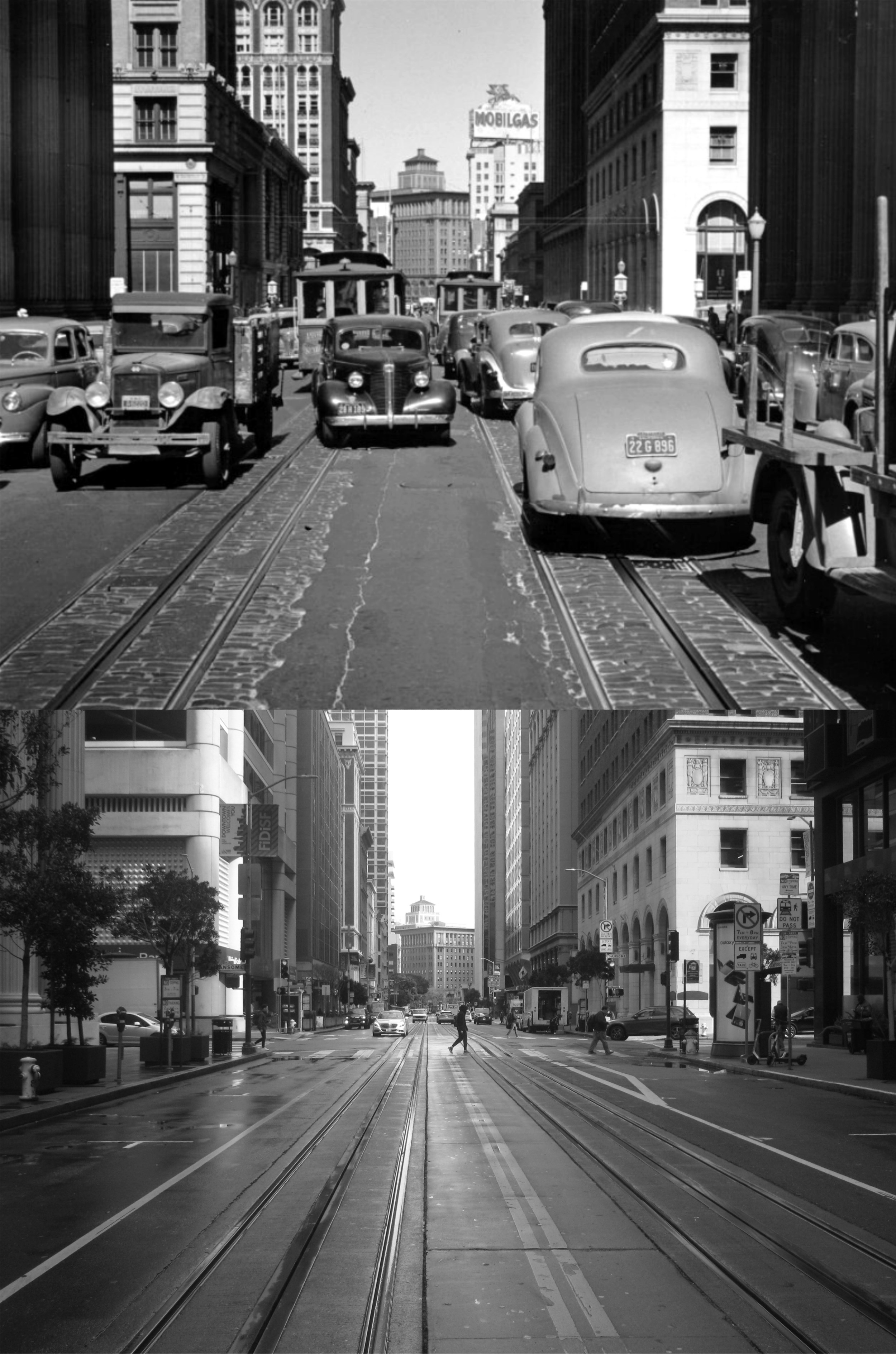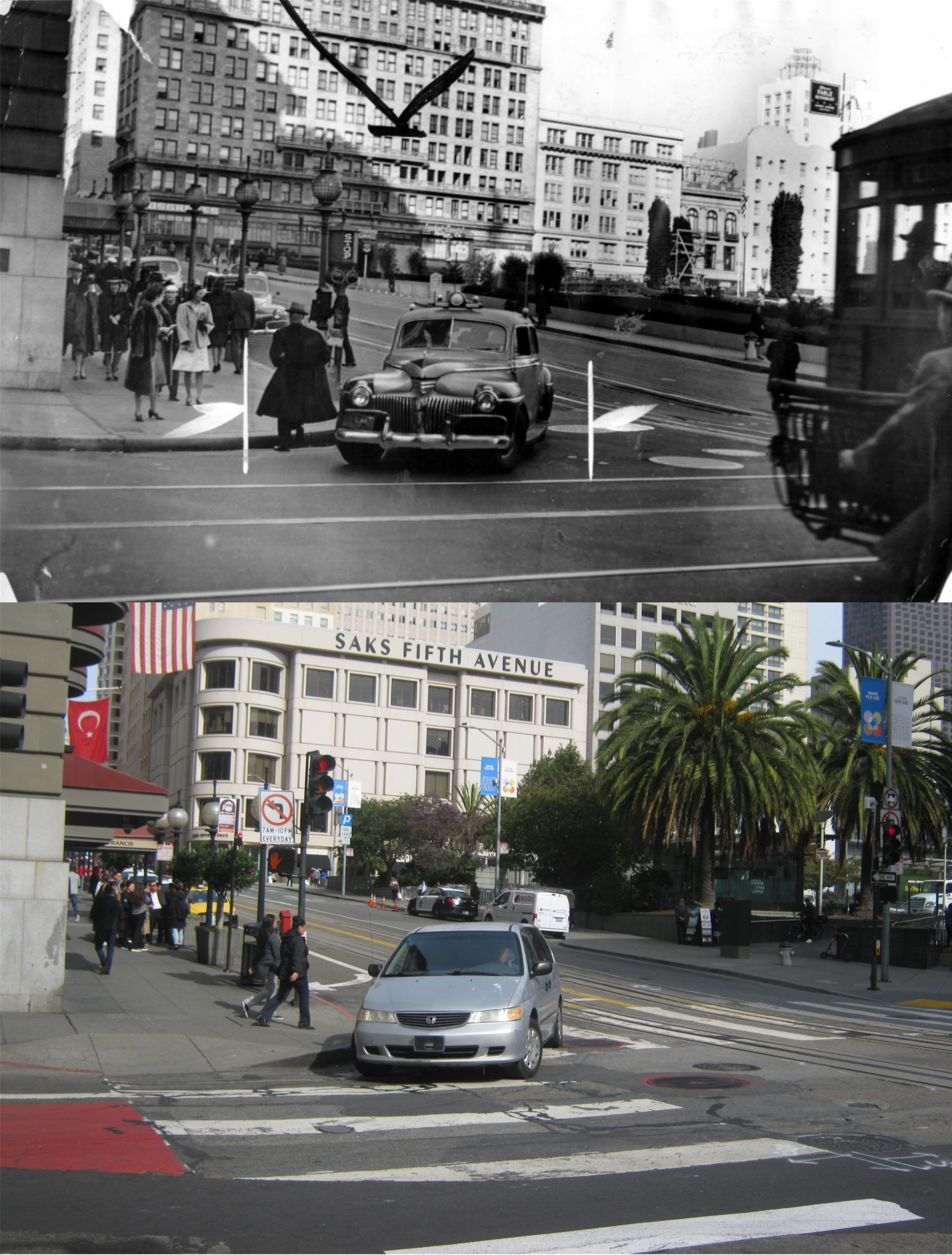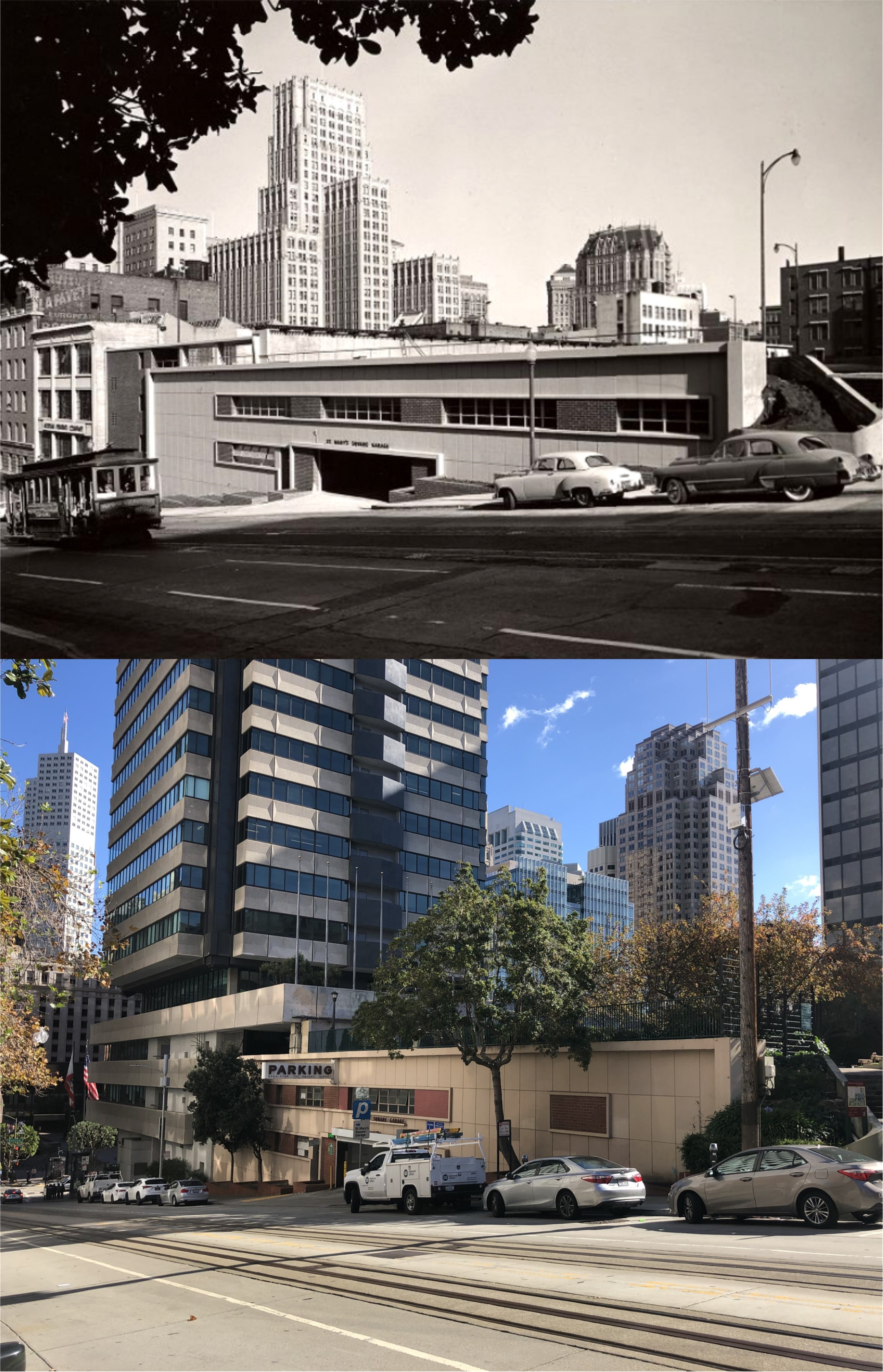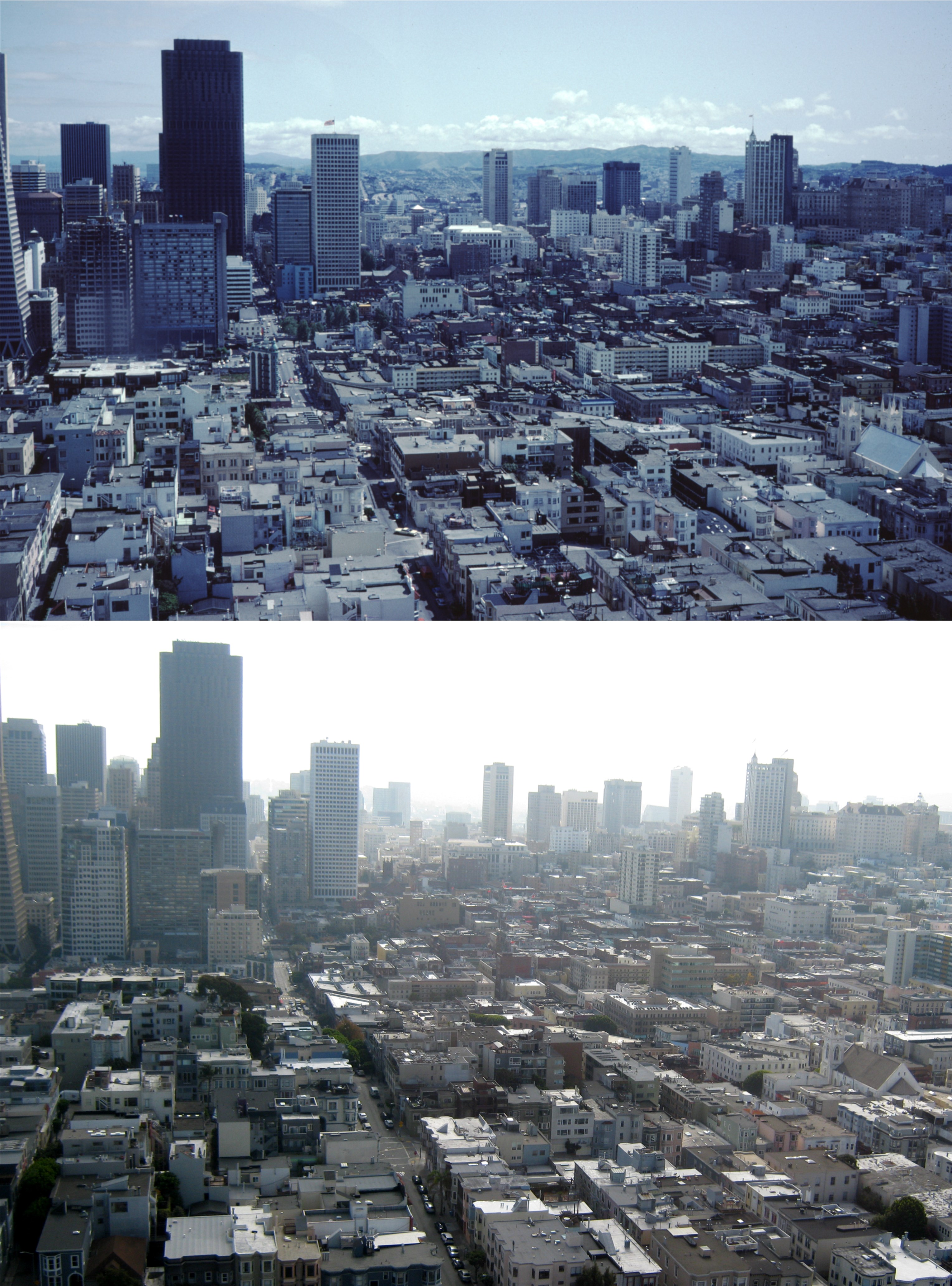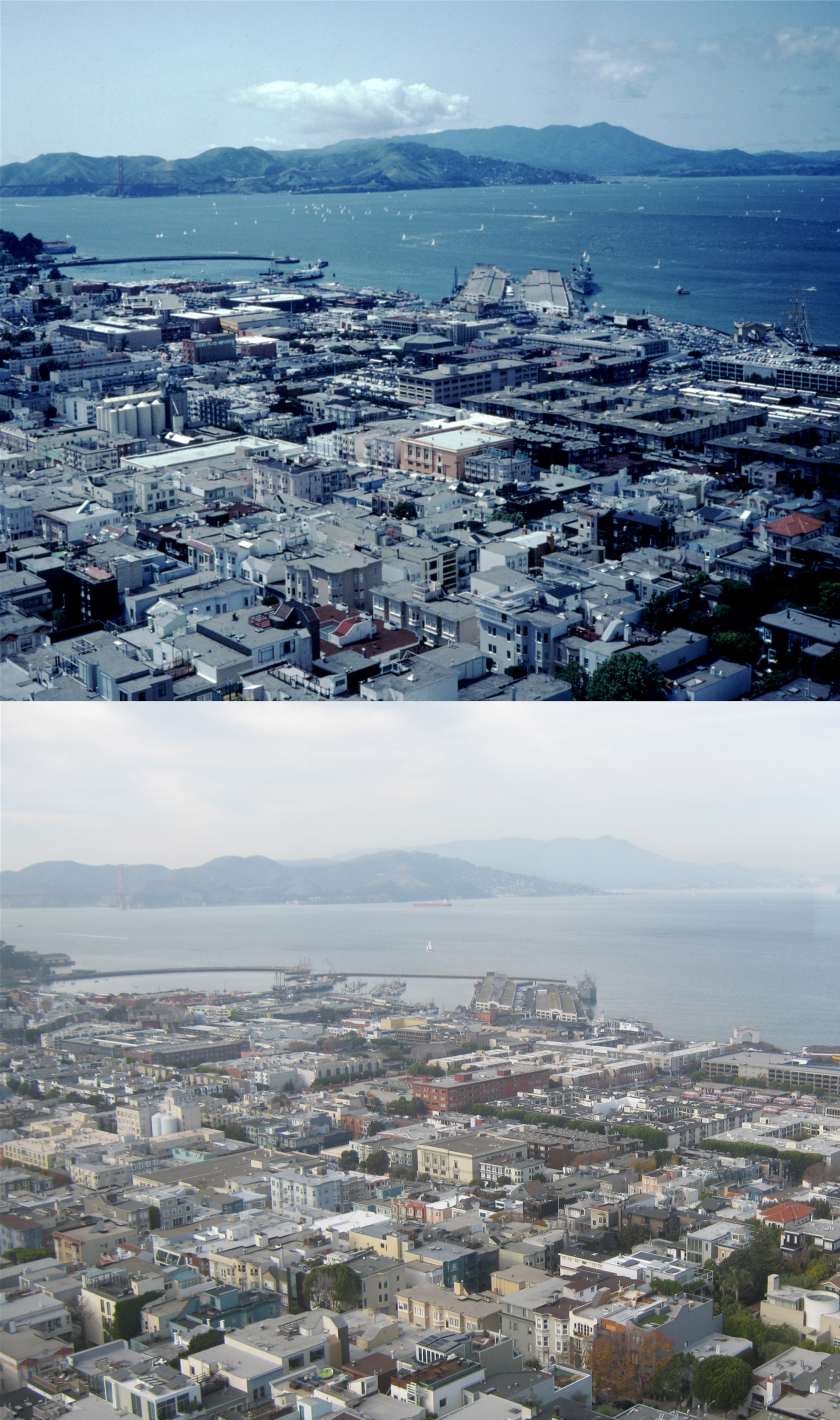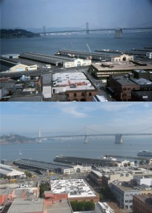 Looking toward Downtown San Francisco: Except for the Pyramid Building, this one doesn’t match up at all. The Salesforce Tower, looming in the background through the haze, is actually much taller than the Transamerica Pyramid.