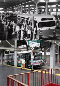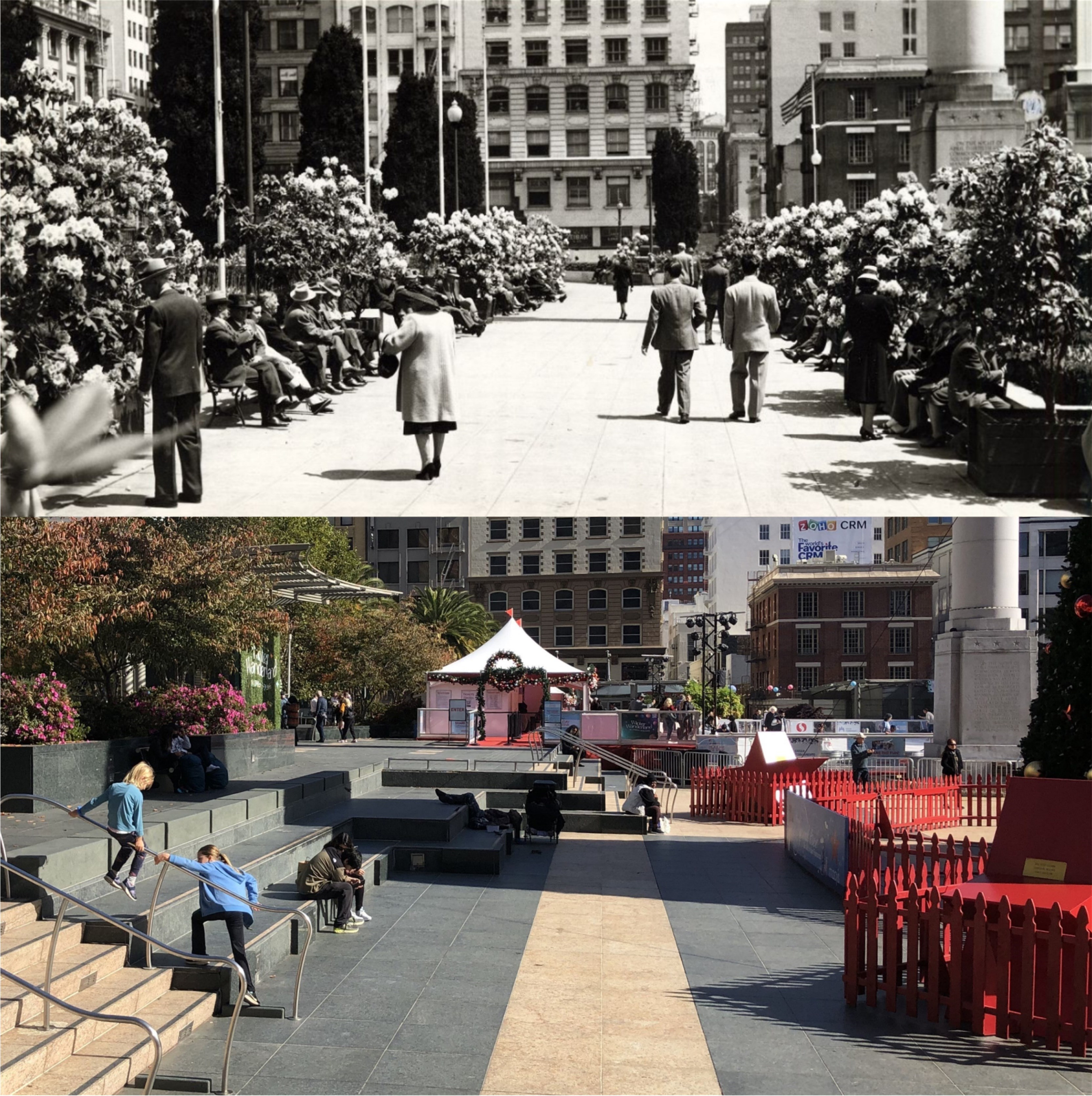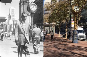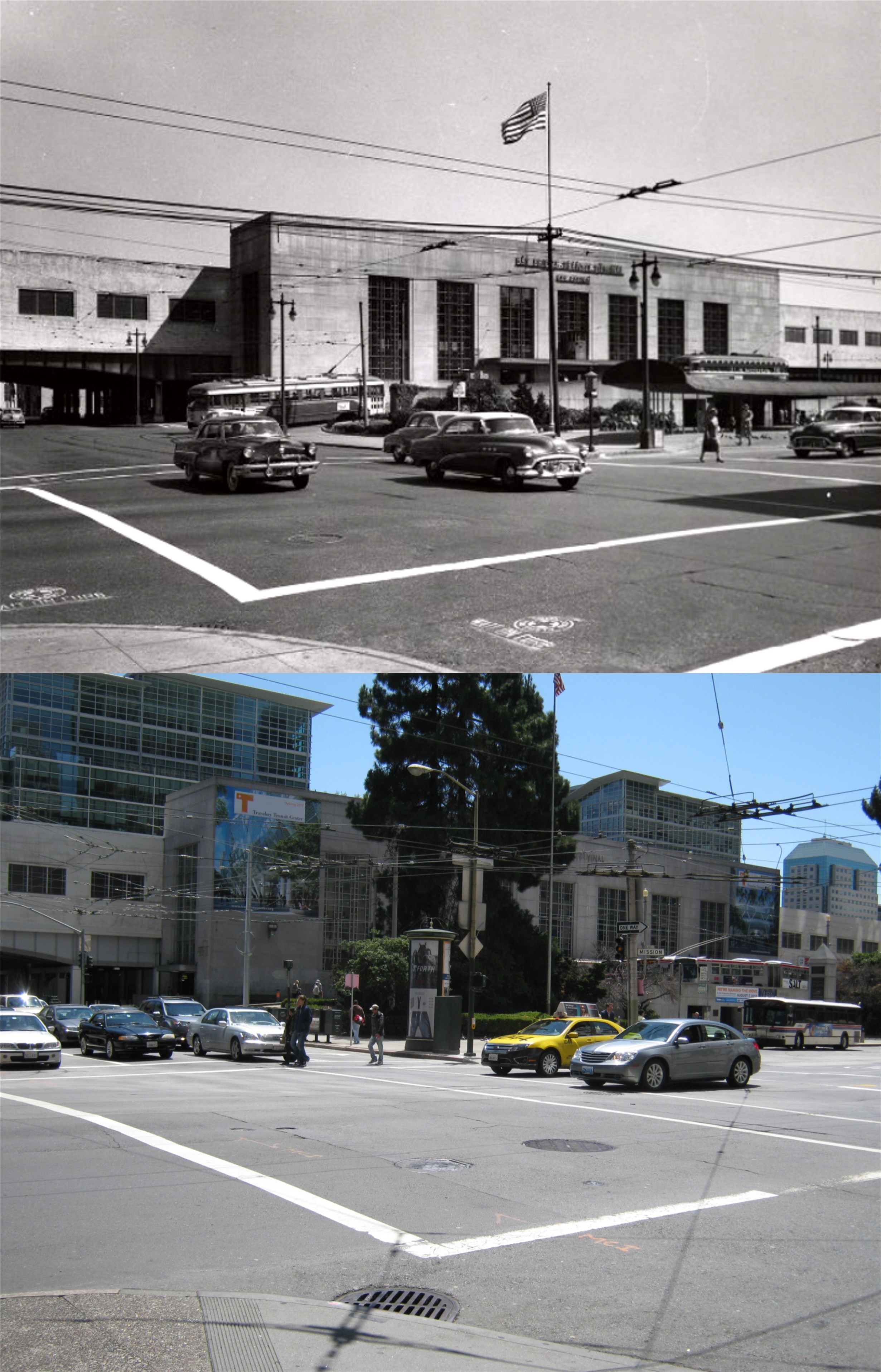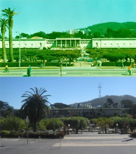 I took the rest of my pictures through the windows of the tower, like this one showing the old Embarcadero Freeway. They don’t match up perfectly with my old slides, but they still make interesting comparisons.