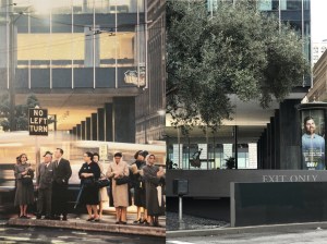 Several posts back I asked if any of my readers ever wondered what people from the 1970s looked like in front of the Vaillancourt Fountain. Of course, I was just in a silly mood…… However, have you ever wondered what people looked like in front of the Crown Zellerbach Building on Market Street in 1962? Actually, they all look kind of bored.