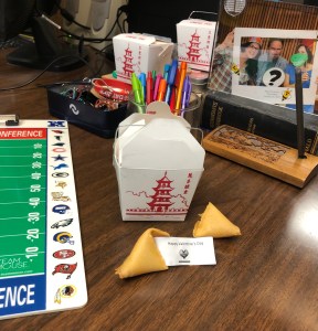 The Golden Gate Fortune Cookie Factory is in Ross Alley. Long ago, this alley was an extremely dangerous place to be in, complete with hatchet men and Tong wars. In the cookie factory, you bring your fortunes in and the lady there puts them in a freshly baked fortune cookie, molds it into shape, and puts the cookie in a pagoda decorated little box.