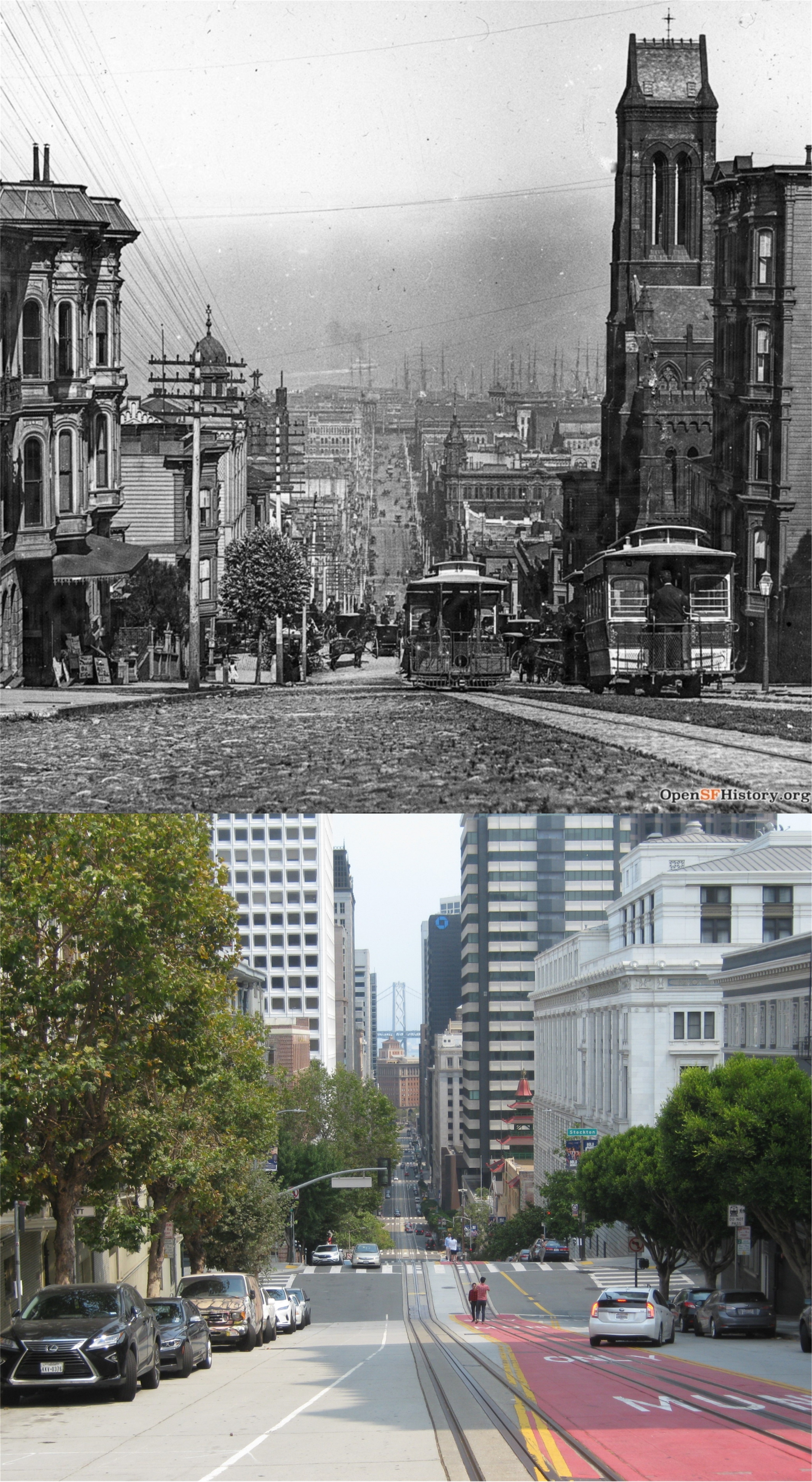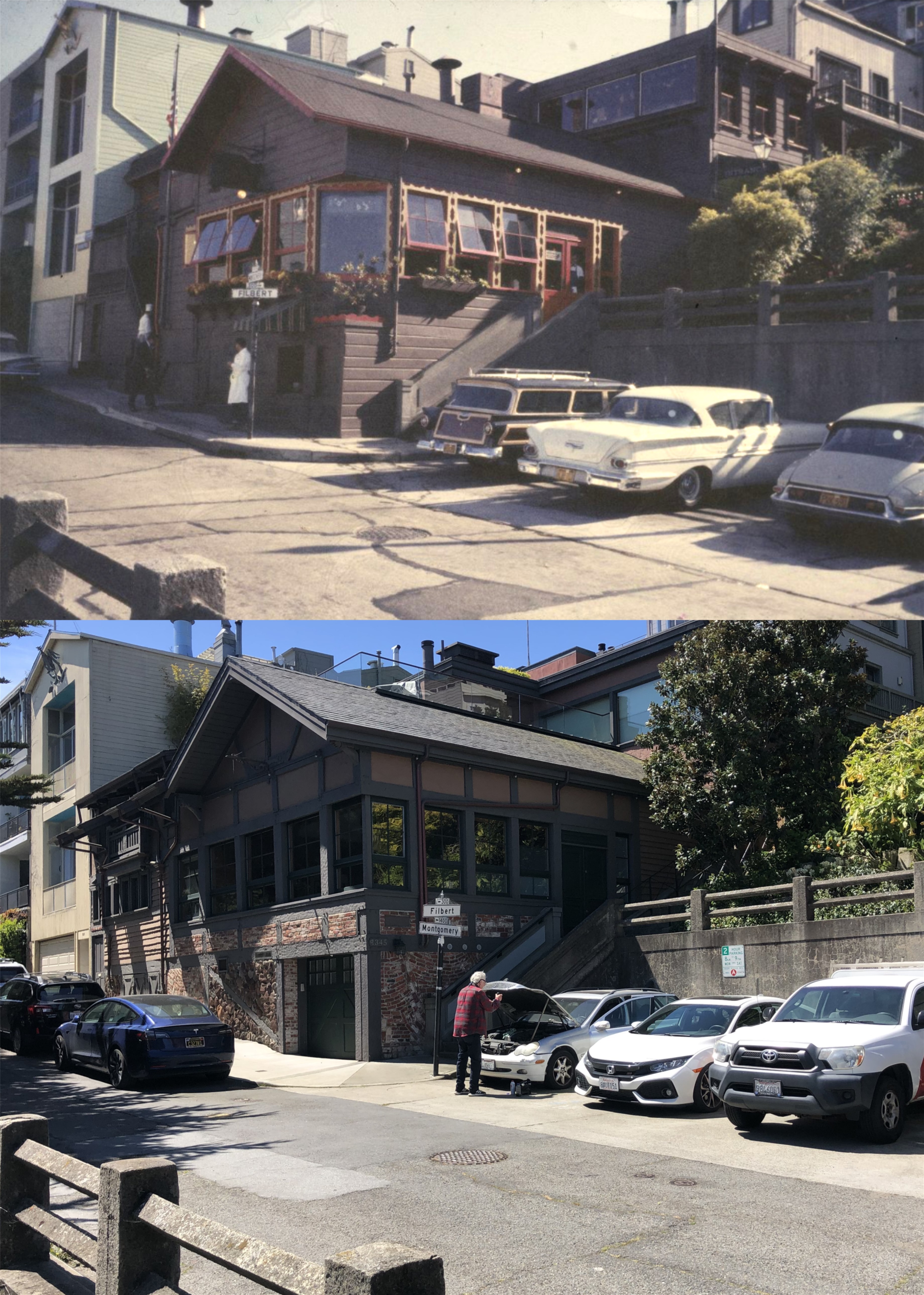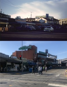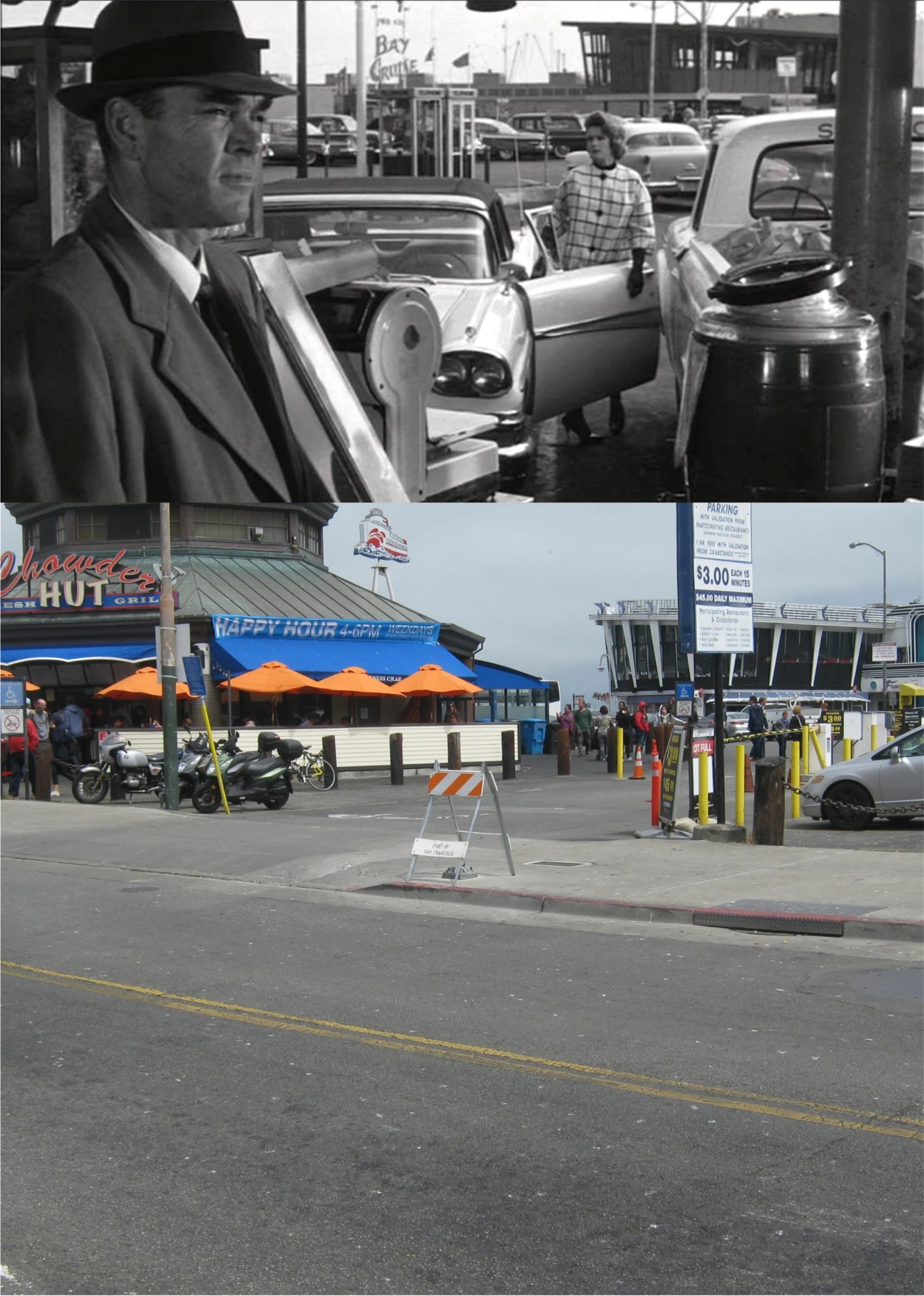 Jefferson and Taylor Streets; Alioto’s and #9 Fishermen’s Grotto are closed now and I didn’t stay as late in the afternoon as the 1940s photo, but I hung around for awhile. (San Francisco Public Library Archives)