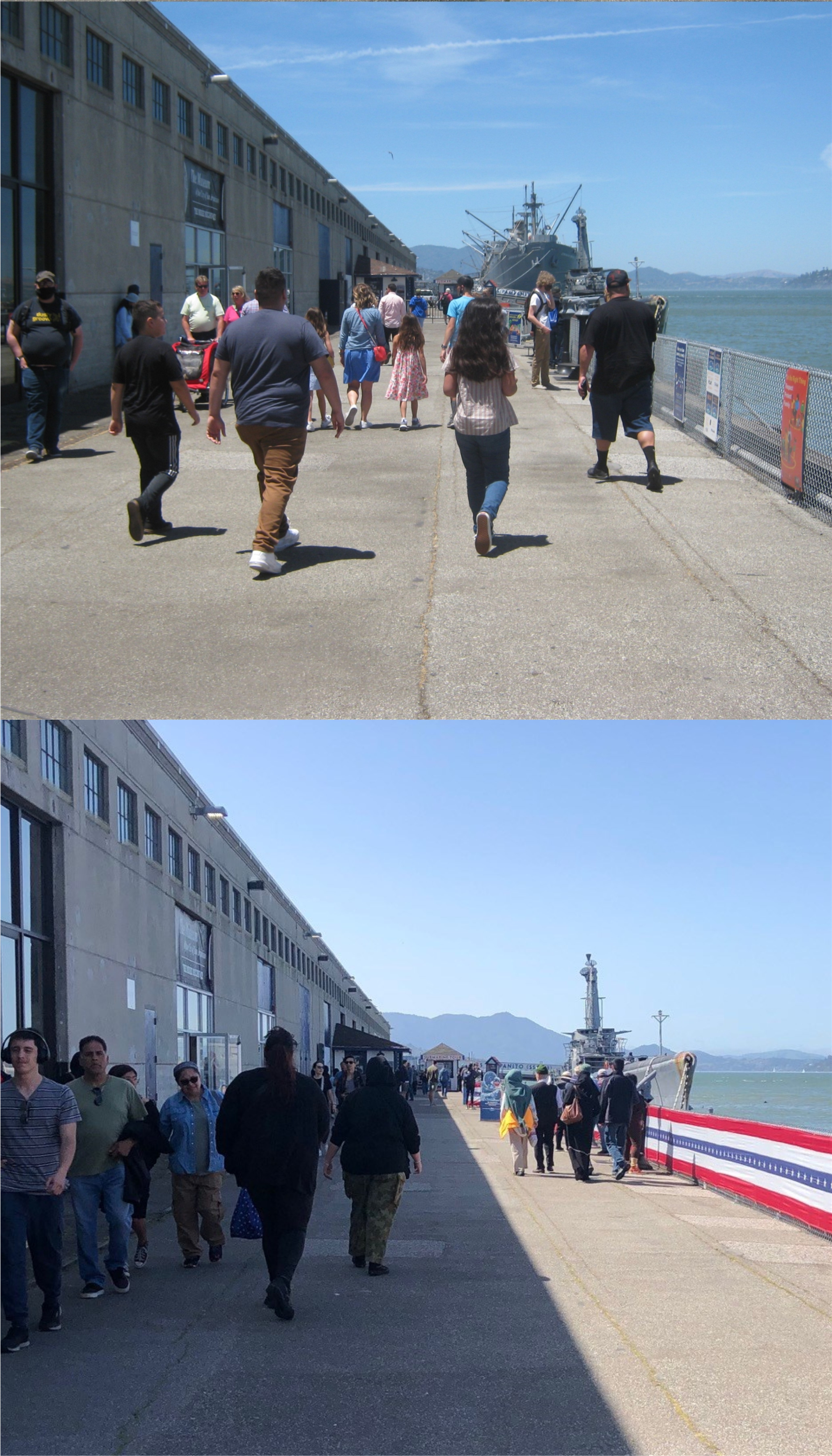 Pier 45, when the Jeremiah O’Brien was there, and last Sunday: Only the World War II submarine, the USS Pampanito, is there now, and that is a great attraction to tour, as well.