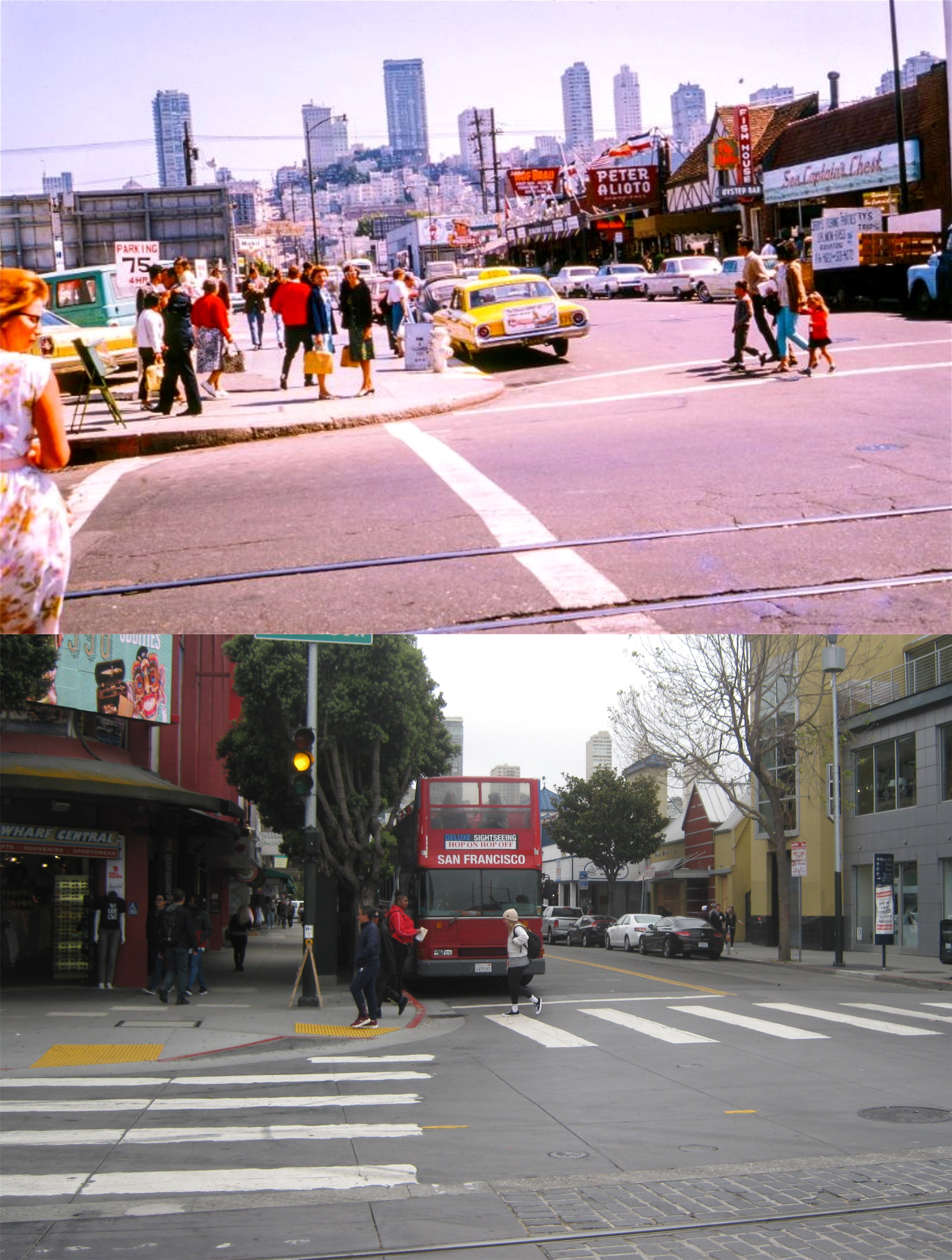 This 1960s photo of Mission Dolores makes a reasonable match up with a picture I took of the church awhile back. I don’t know if tour busses still go there in droves anymore since Junipero Serra has been under fire a lot for his treatment of Native Americans. Like Columbus, I also don’t know if the evidence against him is indisputable or not, but every historical figure gets villainized in San Francisco eventually, so enjoy the building for its architectural history. (Vintage Everyday)
