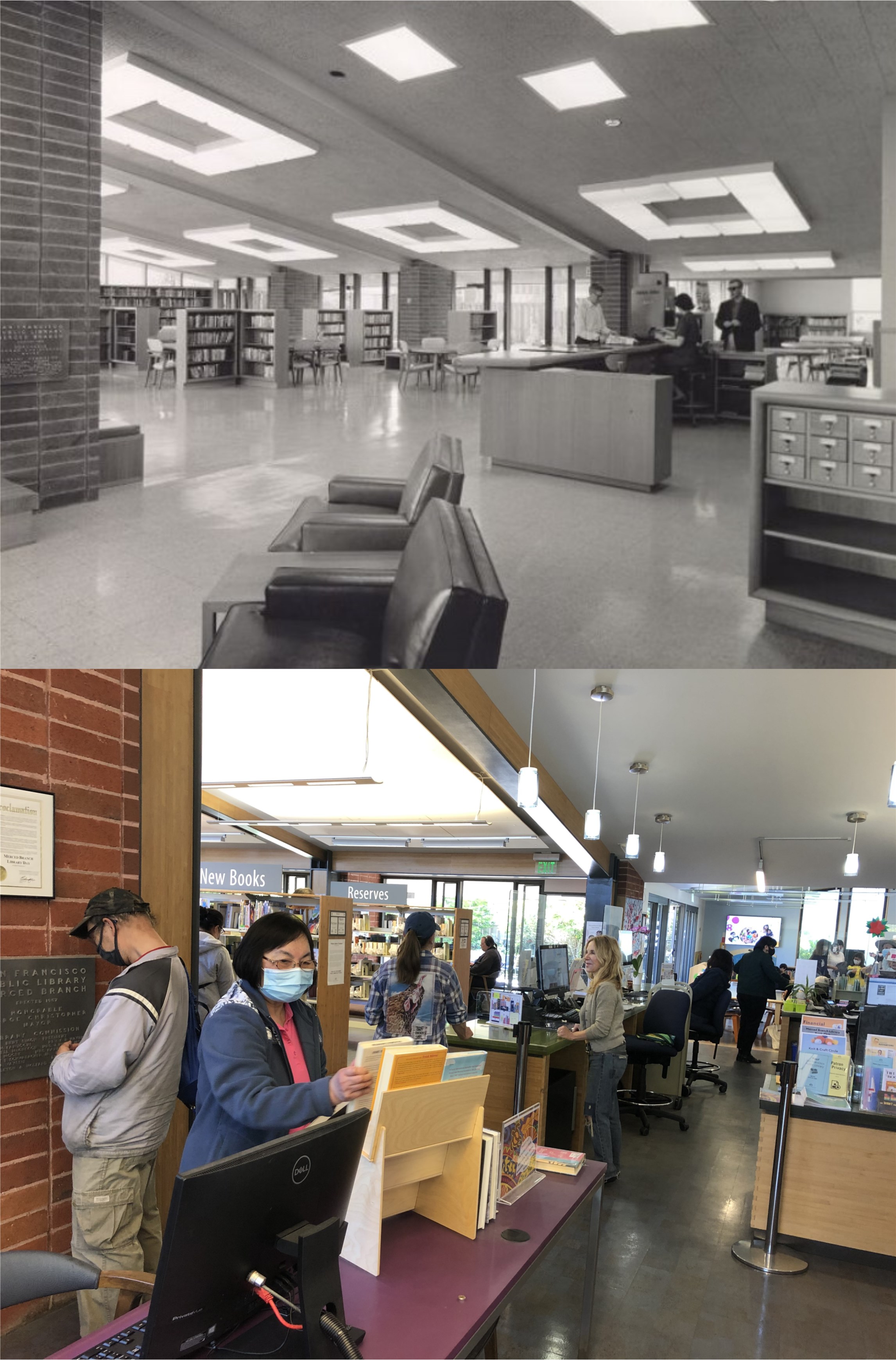 During the first week of May I took the Treasure Island Ferryboat from behind the Ferry Building out to the Island for the ride. This day was a lot sunnier than most of the days in May have been. When I got back to the office, I found a picture of the San Francisco skyline from 1963 that matches up almost perfectly with my 2023 photo here. The two buildings on the right in the old picture and, no longer visible, are the Shell Building and the Russ Building. A dark and sinister looking Ferry Building, wrapped in scaffolding for renovations right now, is at photo center. (opensfhistory.org)