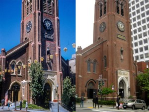 I walked down to Old St. Mary’s Church at California Street and Grant Avenue. I’m not sure what the Flag was commemorating then, but it’s possible it may have been on a long-ago Memorial Day. (Vintage Everyday)
