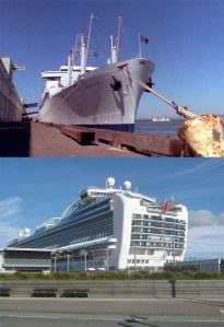 The cruise ship the terrorists arrive in docks at Pier 35: They build them bigger nowadays.