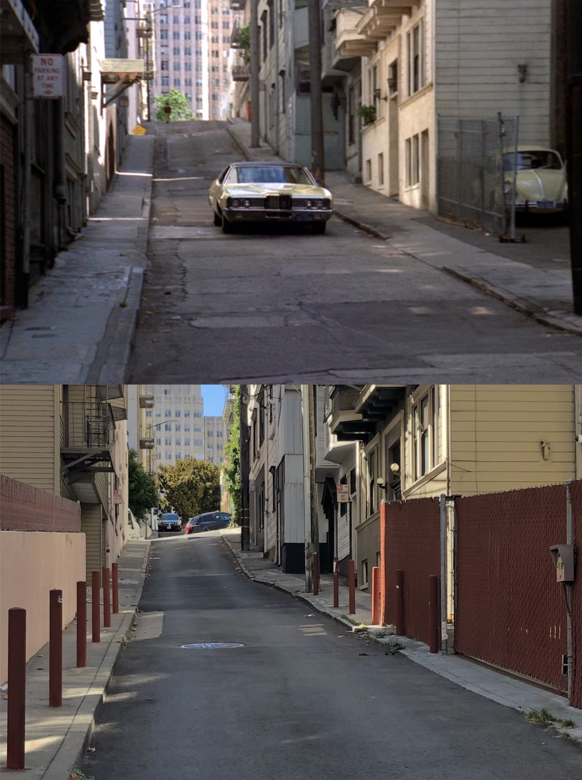 Joice Street is another interesting little known San Francisco Street. It’s actually a little more than an alley that runs three blocks from Pine Street to Clay, and I’ve posted a few updates on it in the past, but I became interested in exploring it again after reading about it in the opening chapter of Gary Kamiya and Paul Madonna’s wonderful book ‘Spirits of San Francisco’, published just at the opening of the Covid-19 Pandemic that shut San Francisco and most of the world down in the spring of 2020. The street runs in sort of a hill-and-dale from, as Gary Kamiya points out, the “glamour” of Nob Hill to the “drabness” of Chinatown. I revisited a little of street’s history, and also remembered a little known claim to fame, if that makes any sense, that I saw in a 1972 episode of the television show ‘The Streets of San Francisco’ that featured Joice Street. (Thumbnail images)