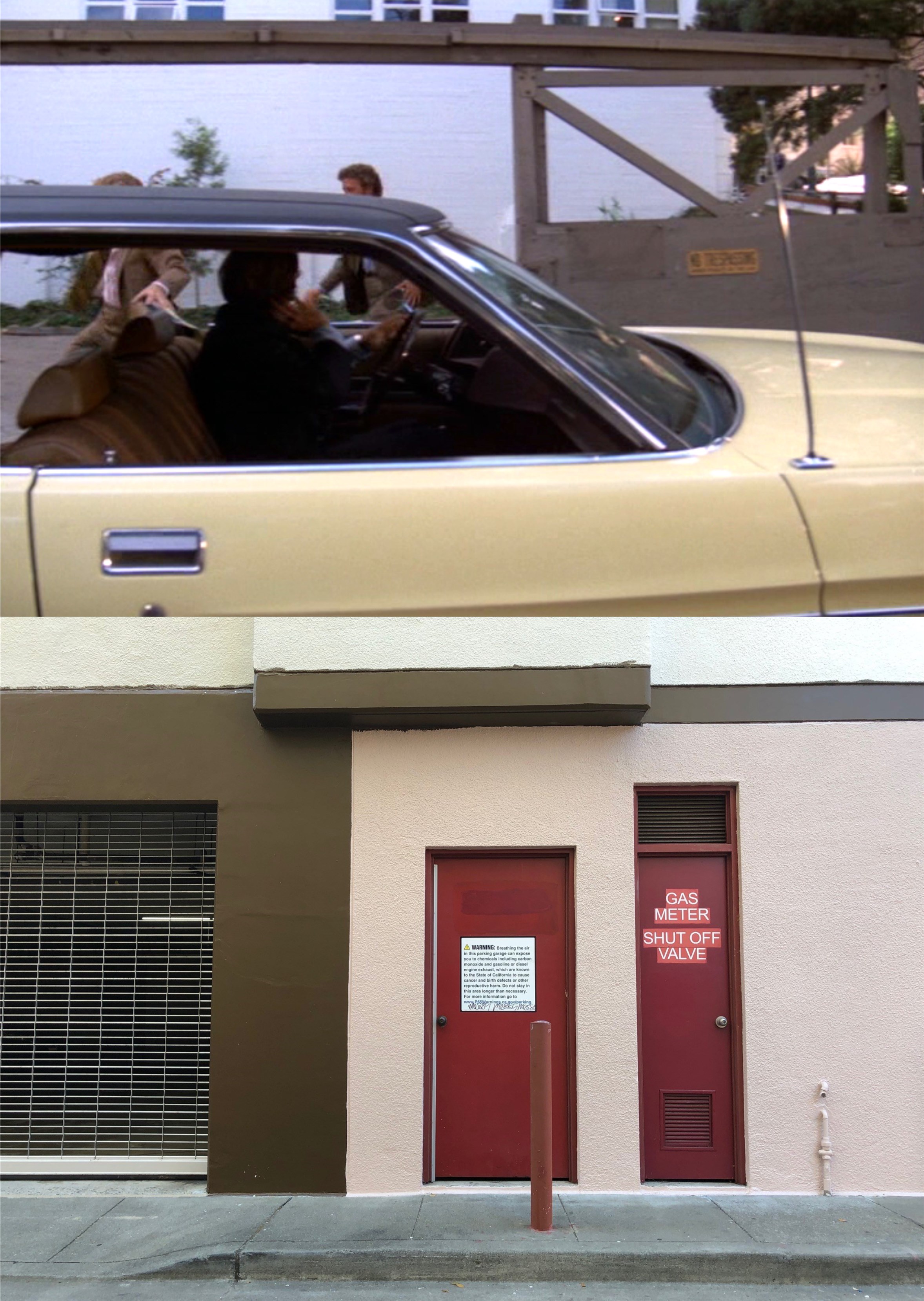 The kidnappers speed down California Street past the obligatory 1970s Volkswagen, and turn left into Joice Street. Joice Street is where the white truck is in the current picture.