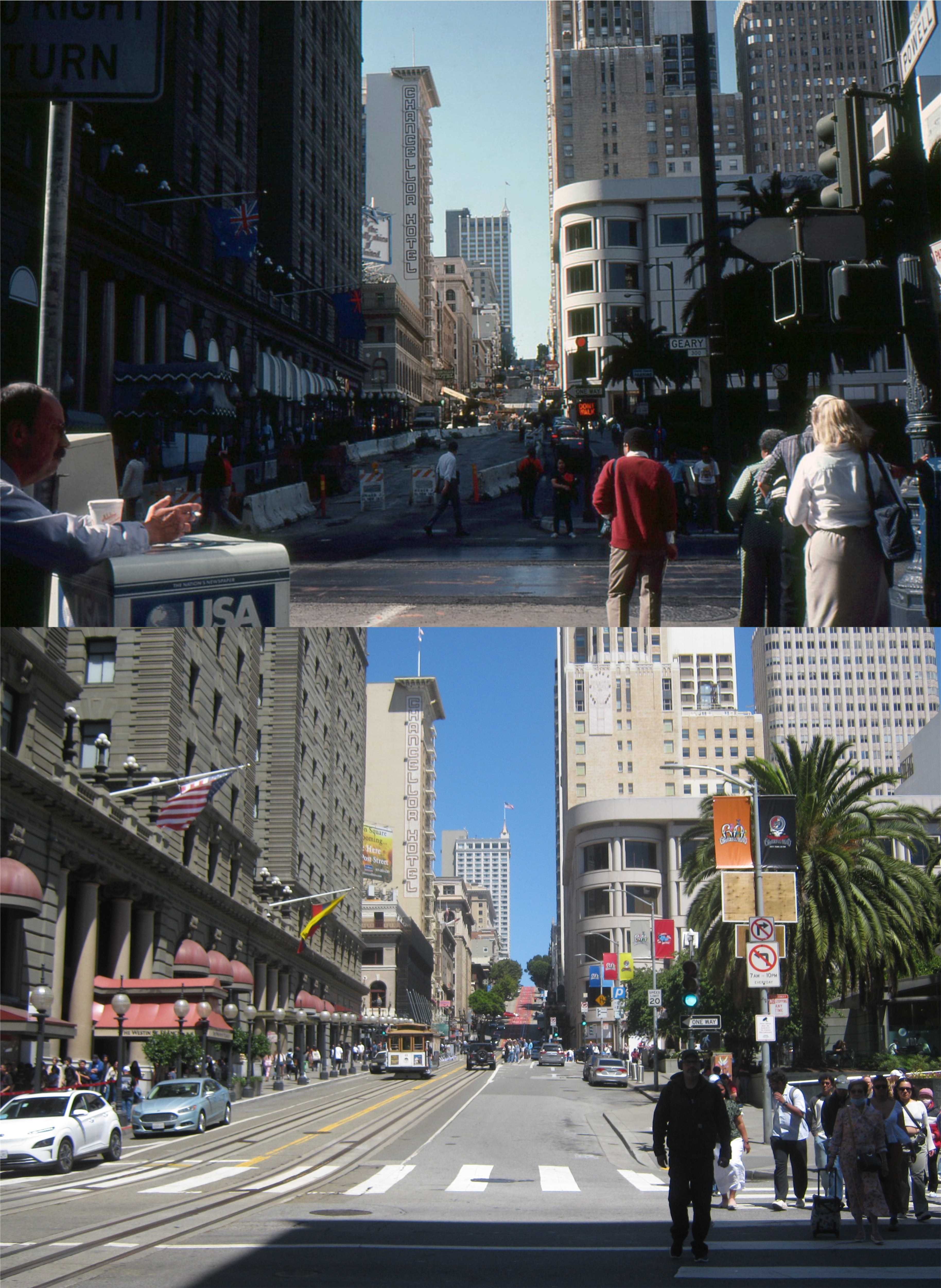This was too good of a match up of people on a bench in Golden Gate Park to miss the opportunity, and I don’t remember anybody in the modern photo getting mad at me. I didn’t worry about the feelings of the people in the older picture