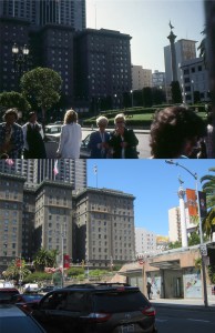 Sometimes, I’m not paying attention to the people in my line up, and then I notice things, like the pretty girl with a Victoria’s Secret bag crossing Ellis Street at Powell, when I look at my photo later. (Peter Stratmoen)