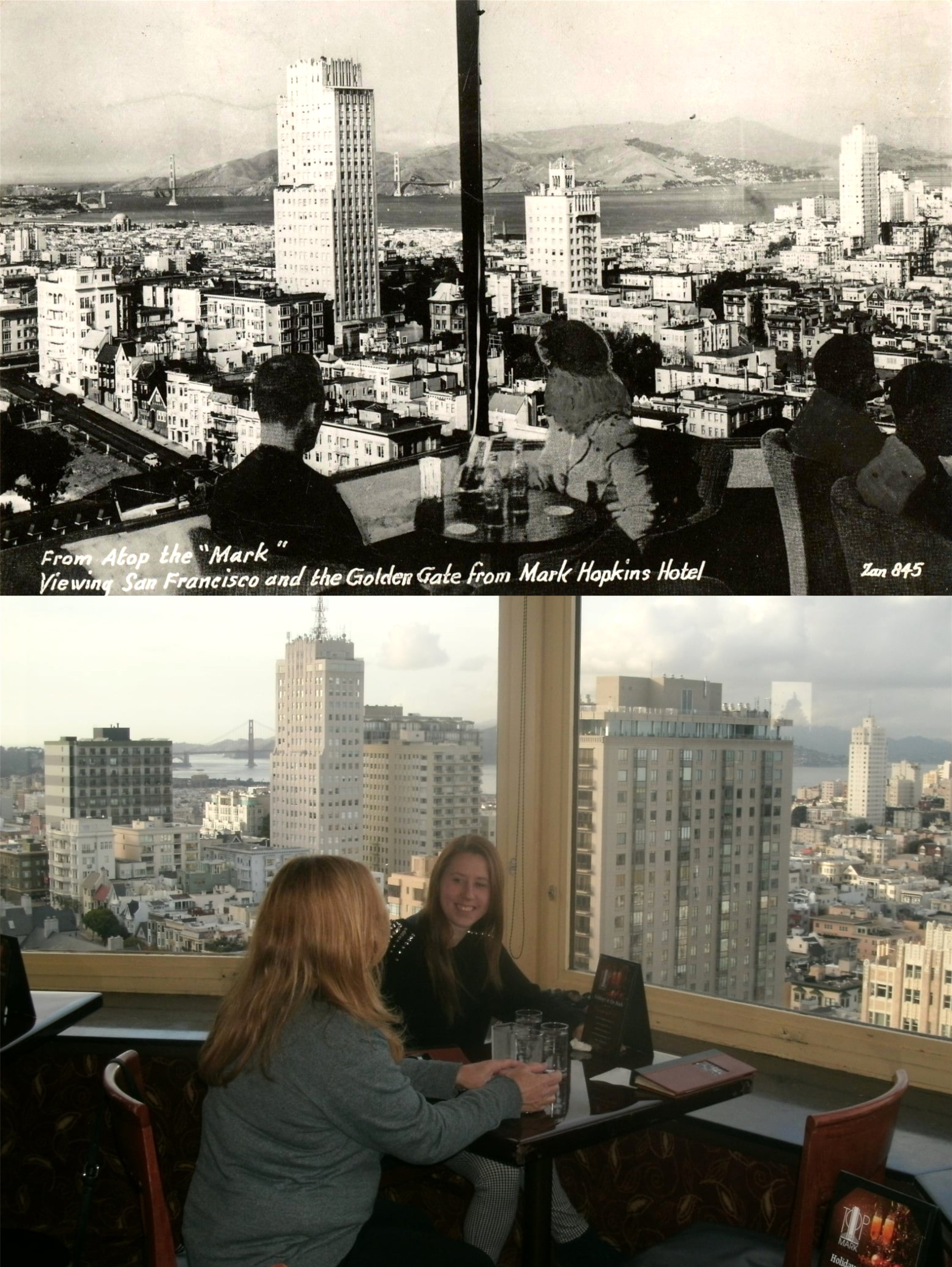 Not the same stairs, but possibly the same level these two socialites from Berkeley are descending to in 1939. (SF Library Digital Archives)