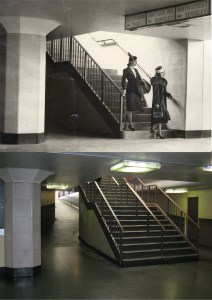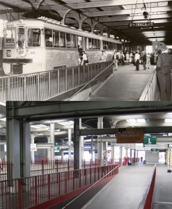 I don’t remember the downstairs bench area for passengers waiting for a bus or train being that claustrophobic. The vintage pictures was in June of 1939. (UC Berkeley Library Archives)