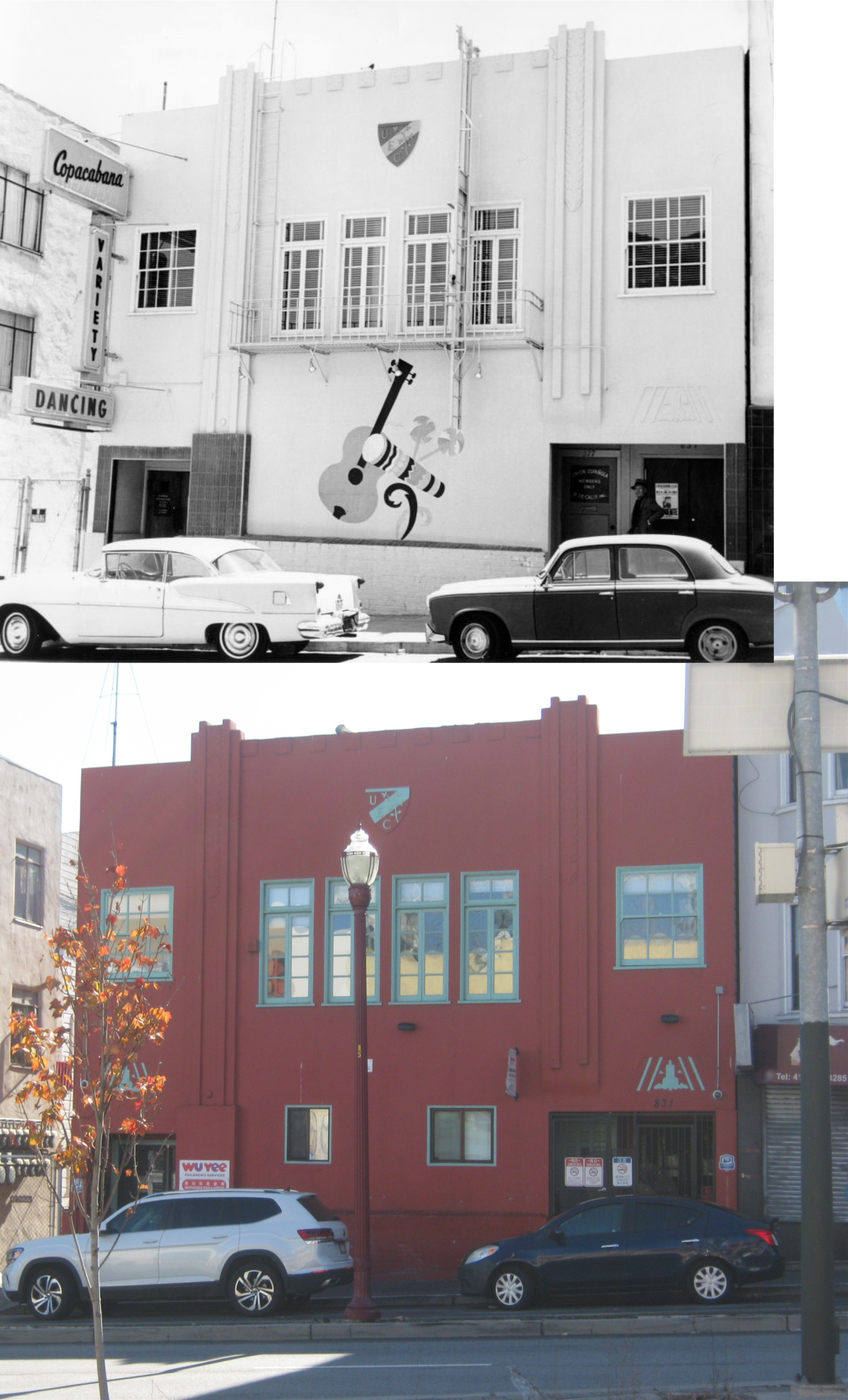 The Moulin Rouge Nightclub at 412 Broadway, next to the Casa Madrid; like France is next to Spain. The Moulin Rouge building is the only one in this post gone now.