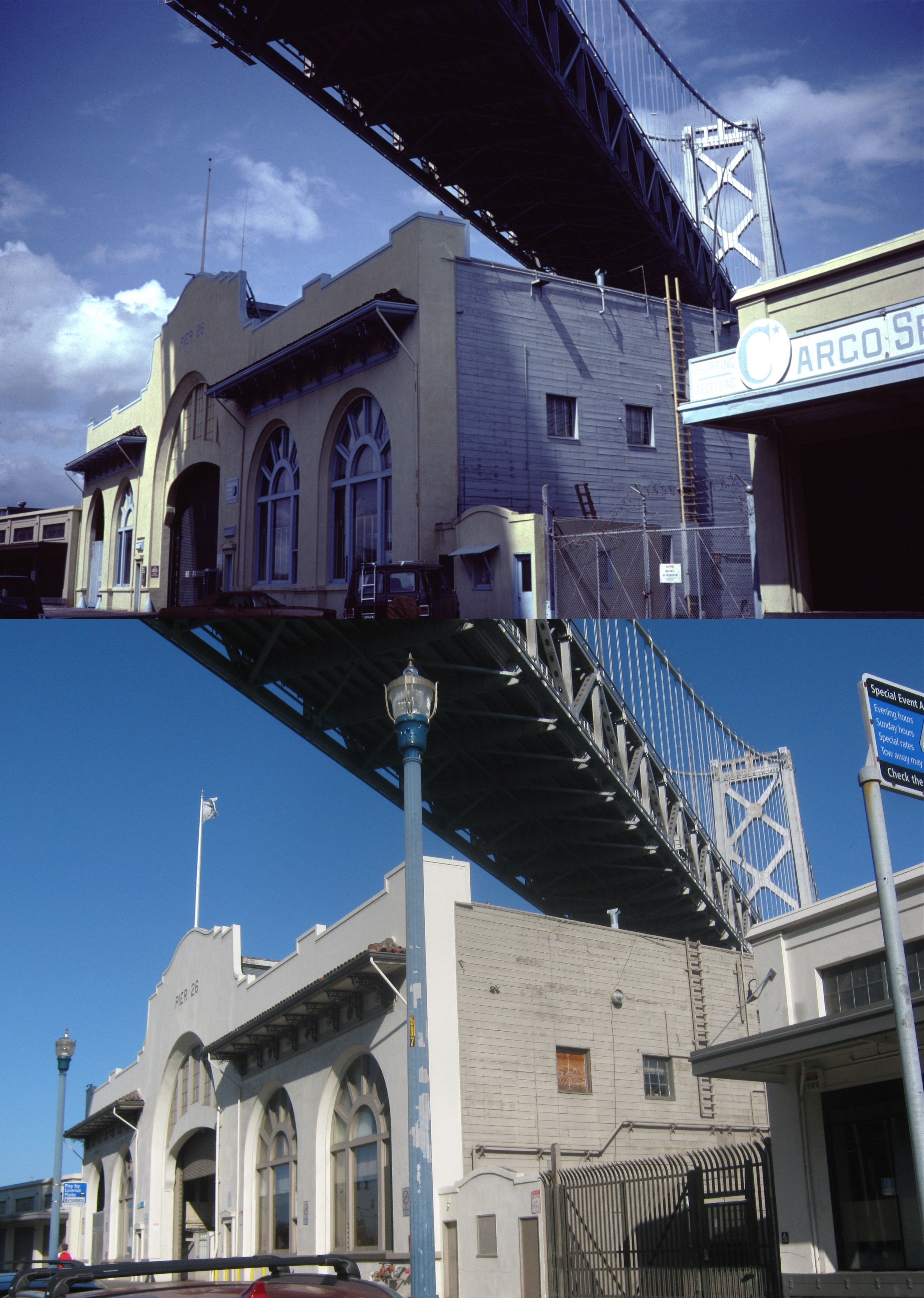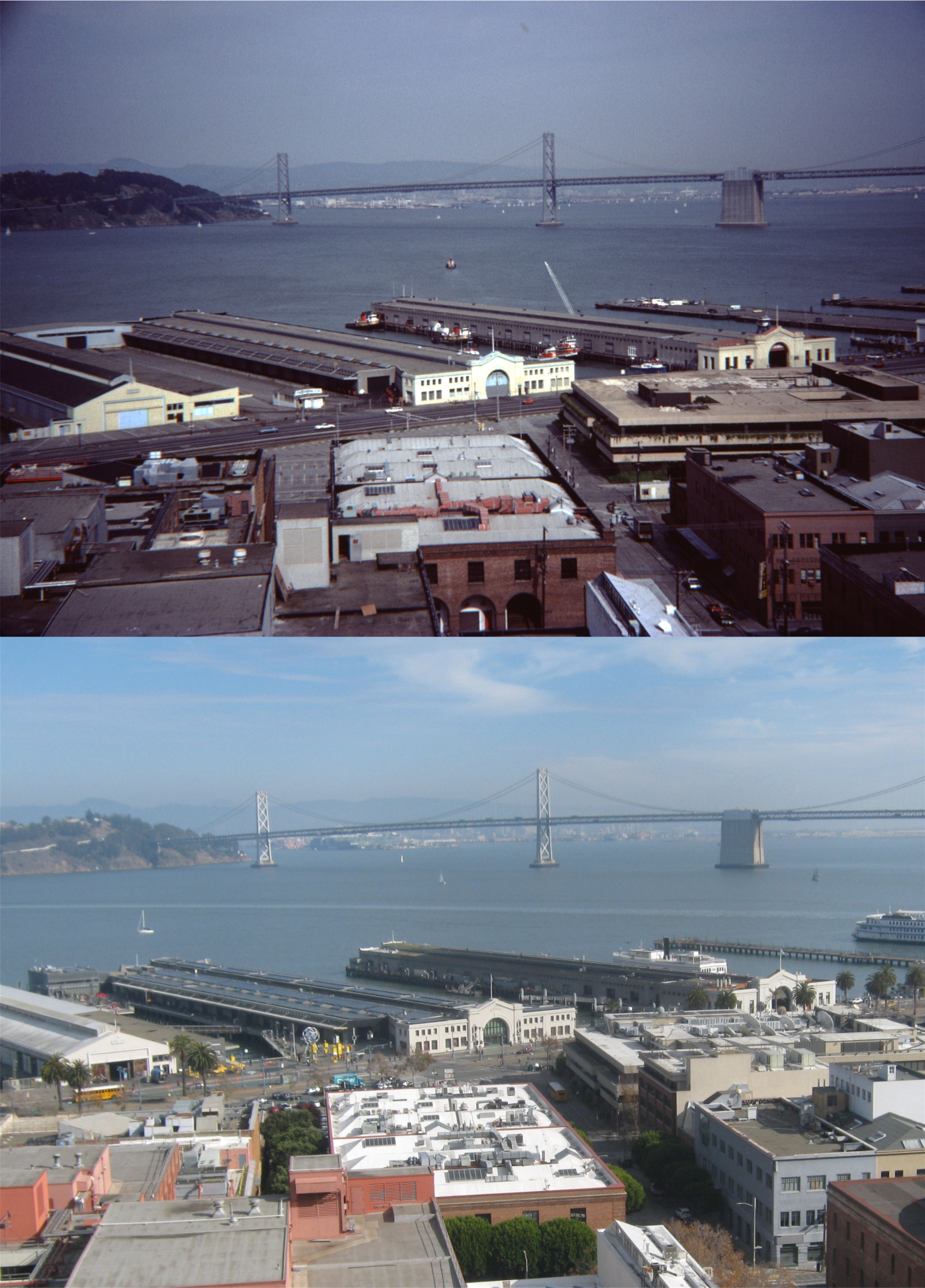 The Embarcadero from Telegraph Hill: Back in 1983, they painted most of the piers mellow yellow and baby blue. I remember that I didn’t think that was groovy pot-pie either. They’ve changed them back to pier gray now.