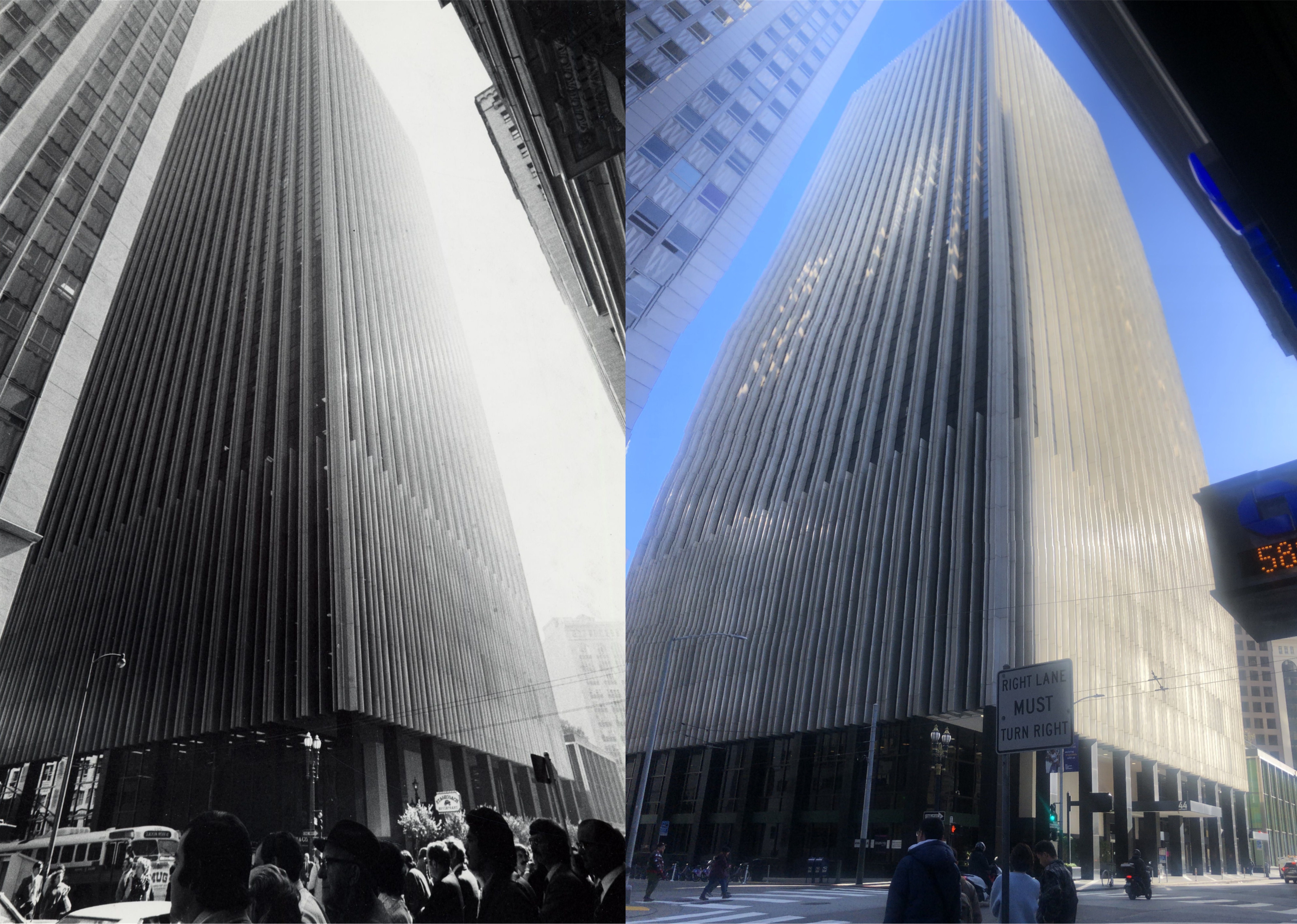 The Wells Fargo Building at Montgomery and Sutter Street in 1973: I don’t think that it’s stretching the point to say that this isn’t a bad comparison. Ta da boom! (San Francisco Library Digital Archives)
