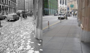Back down near Market Street for a little New Year’s Eve celebrating in the late 1950s or early 1960s: It was customary up until the 1990s for office workers to throw ticker tape and calendars out of their windows in Downtown San Francisco, and everywhere else, on New Years Eve. (SF Chronicle)