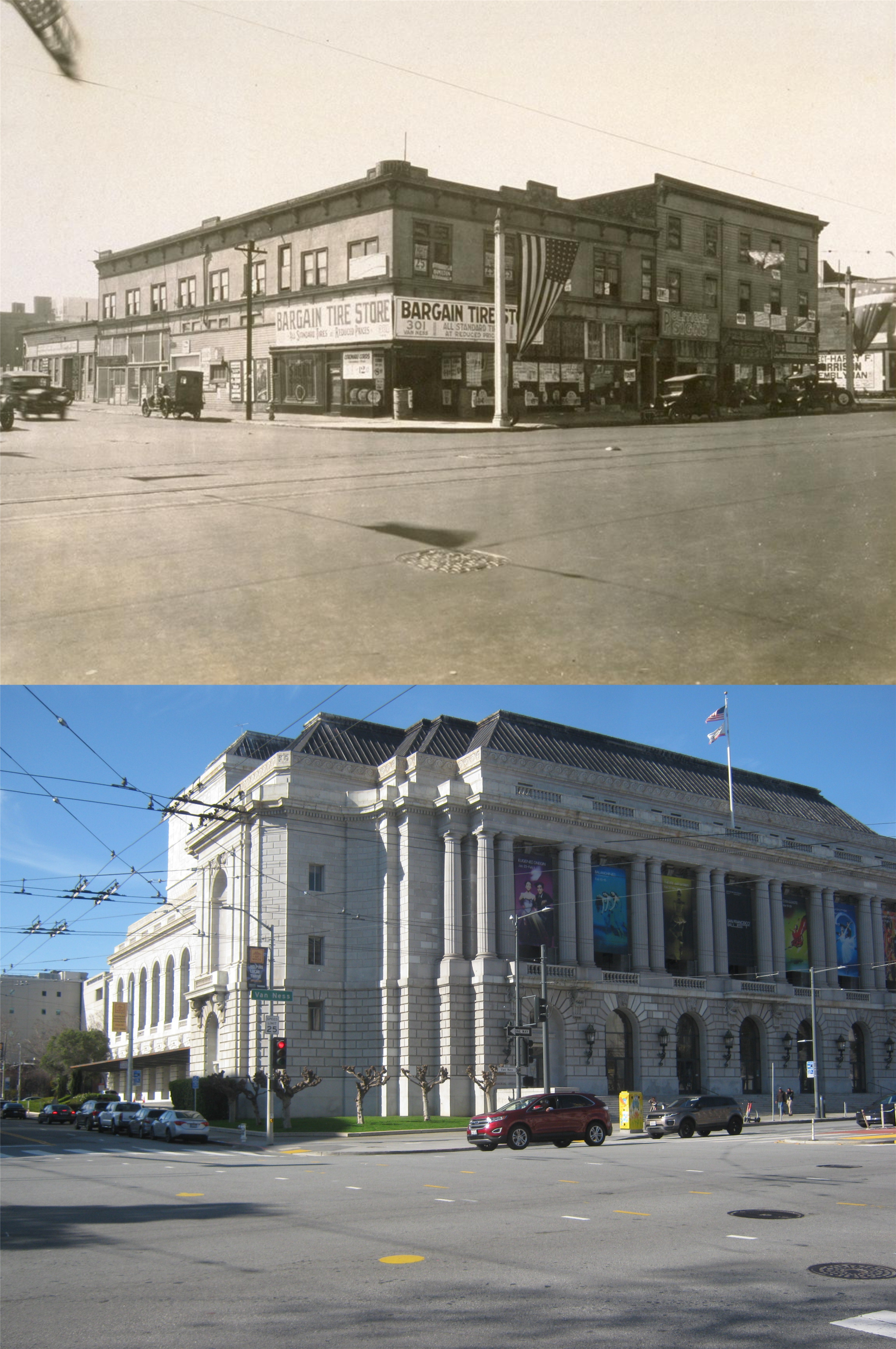 The northwest corner of Van Ness Avenue and Grove Street in 1926 before the War Memorial Opera House was built in 1932: Well, opera is wonderful, but I probably would have visited the Bargain Tire Store more than I do the opera if I were around back then.