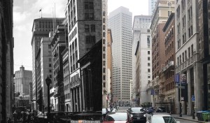 Looking down Sansome Street toward Market Street circa 1939: It’s not the best of line ups, but it works. In the far left background of the vintage picture is the Pacific Telephone Building on New Montgomery Street, blocked from the view now by whatever that building on Market Street is.