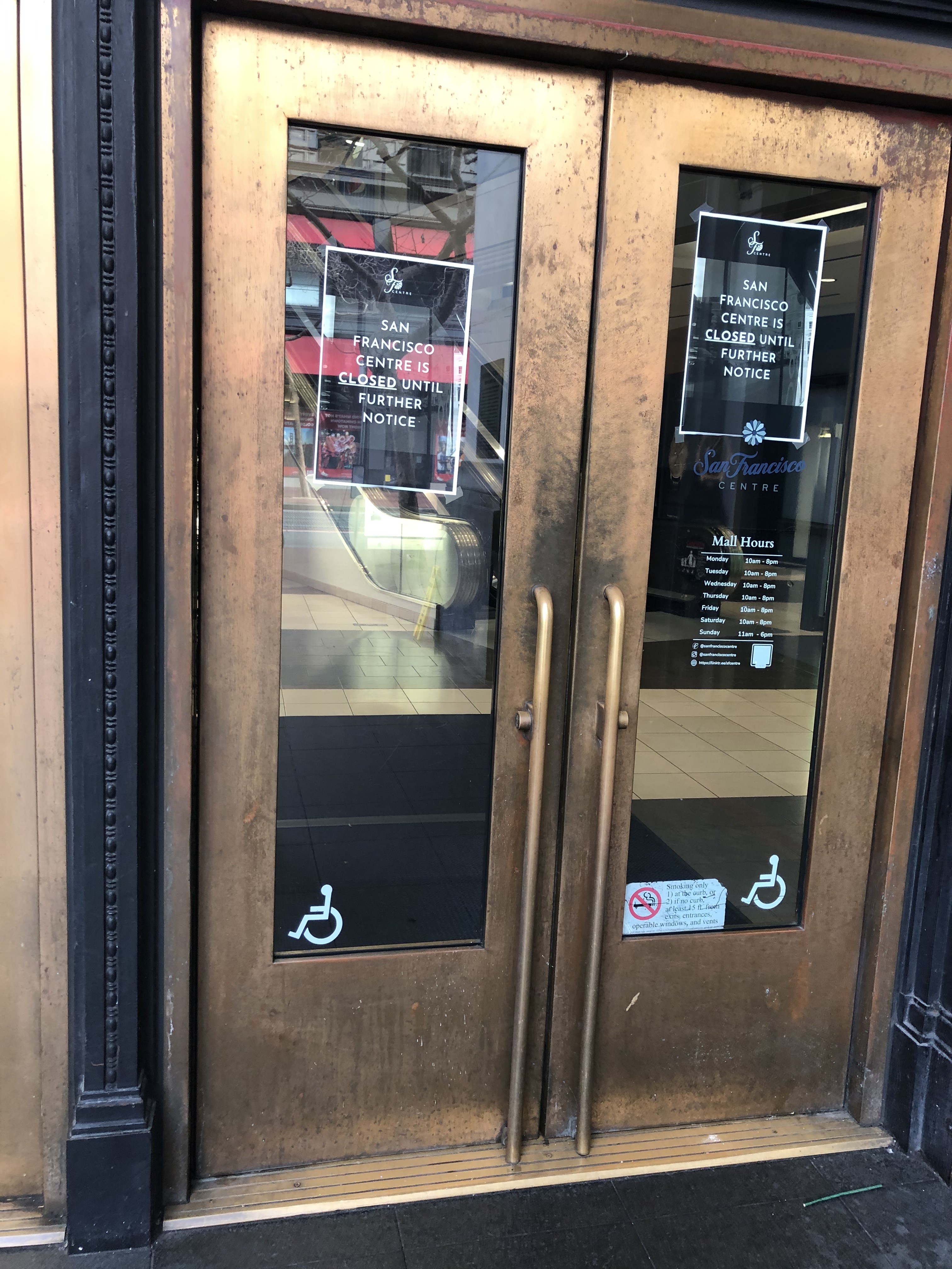 Yesterday, Sunday, I had planned to visit the City Centre Mall in the old Emporium Department Store Building before it’s scheduled closure on Monday. However, on Saturday, the morning news was that the Centre, San Francisco’s largest indoor mall, would close that Saturday, rather than Monday. I went over there anyway on Sunday, in case the news wasn’t accurate, but alas, alack, and Alaska, the old department store building was locked up, and as empty as the Cliff House. So, I crossed Market Street to Powell to see if the cable cars were running. They were, and the line was jaw-dropping; there was only about ten people in line, and to me, that’s jaw-dropping! I figured that it was a good time to take another ride on America’s only moving National Monument to the California Street Cable Car Line, and ride that line down California Street to Market Street near the Ferry Building. This turned out a much better outing than visiting a near empty mall, no matter how famous the old building is. (Thumbnail images)