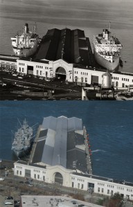 #12 Look for #12 up on Telegraph Hill at Coit Tower, where I took my picture looking down at pier 35 early last month in January. The vintage SF Digital Library picture is from 1957. The ship at Pier 35 in my somewhat blurry close up is the Liberty Ship, the Jeremiah O’Brien.