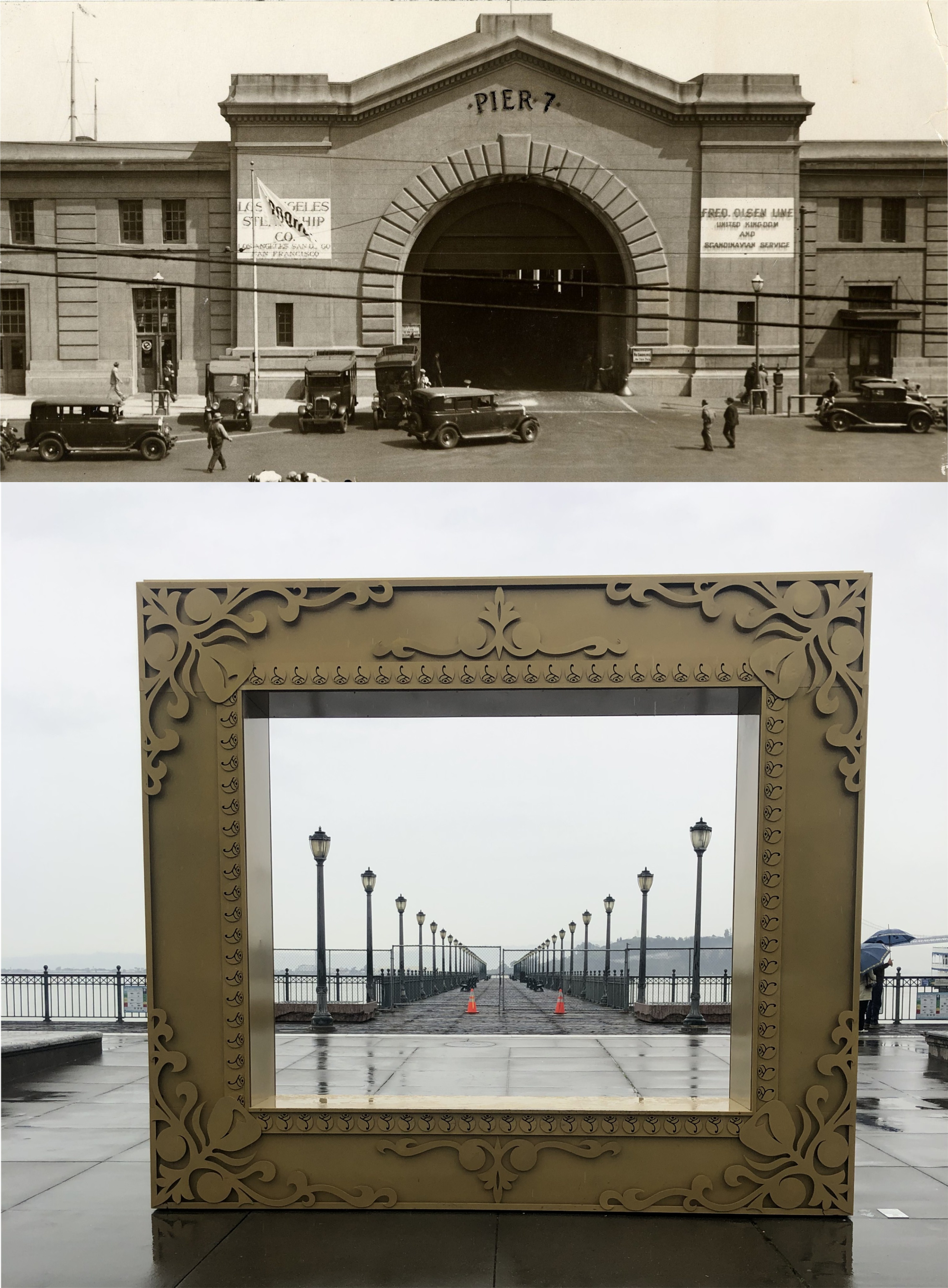 #4 The now demolished Pier 7 in 1931: I took my picture walking past the Walking Pier now at Pier 7 on a rainy afternoon on New Year’s Eve.