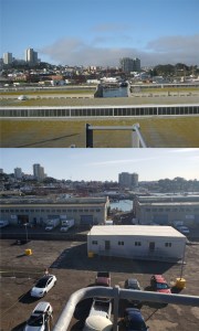 The International Hotel viewed from the northwest corner of Kearny and Jackson Streets as the building was being demolished, and the new International Hotel that’s there today: (Vintage picture from Wikimedia Commons)