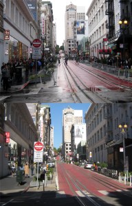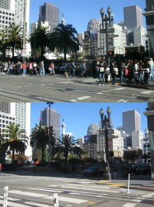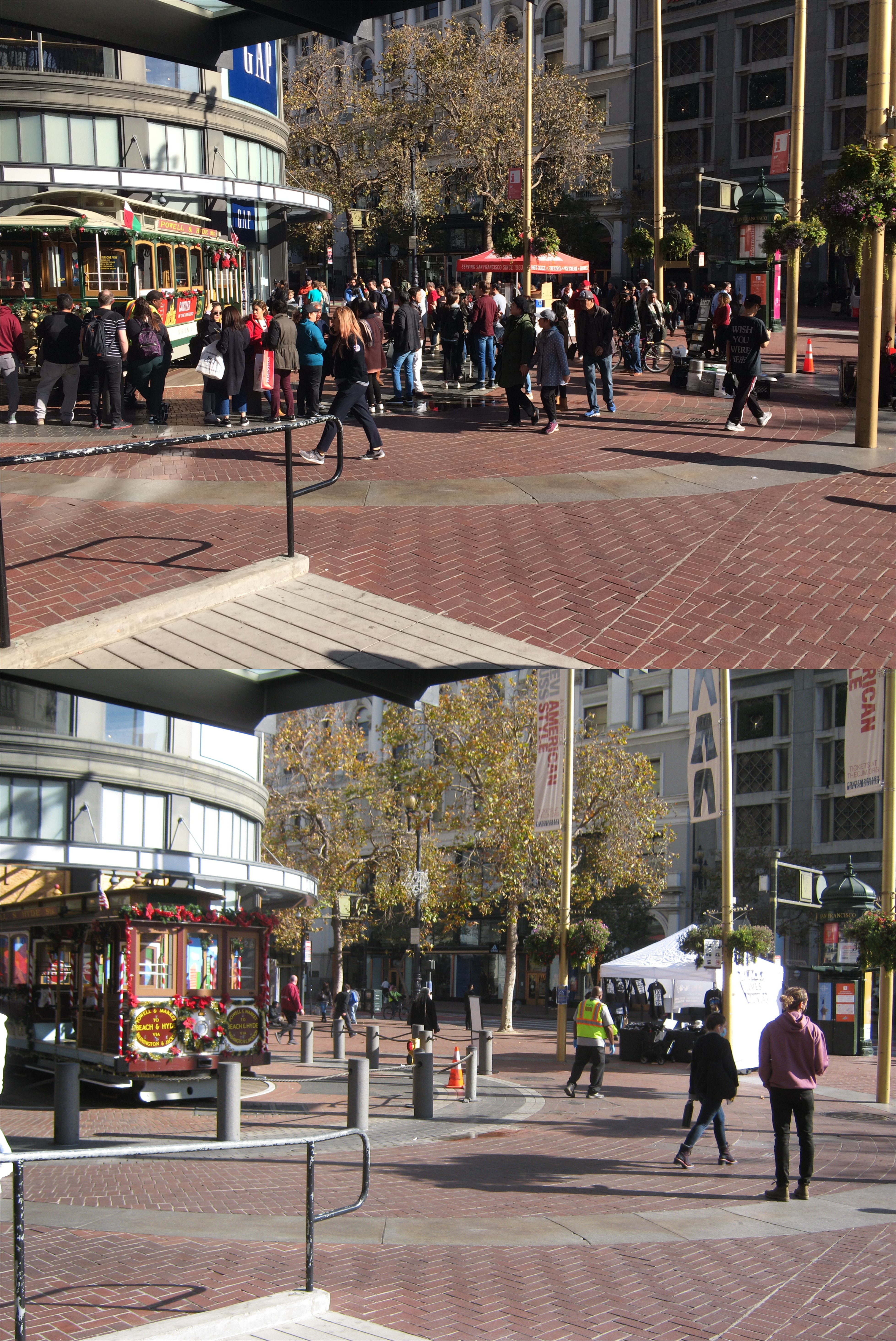 Well, this will probably be my last post before Christmas, or whatever we’ll be substituting Christmas with for this year. In October of 2017, I posted a series of pictures under the title of The ‘Crowded City’. At the time it sounded to me like the title of a film noir movie. The ‘Less Crowded City’ sounds more like something from the science fiction genre. I don’t think that the year 2020 has turned out to be any less fantastic and frightening than any science fiction movie I’ve ever seen. Several shelter-in-place orders have been strictly followed for the most part by the people of San Francisco, and up until this point the loss of life from COVID-19 in the city has been relatively low for such a crowded area. These are a collection of street scenes during San Francisco’s typical past, and during the last full week before Christmas, 2020. (Thumbnail images)